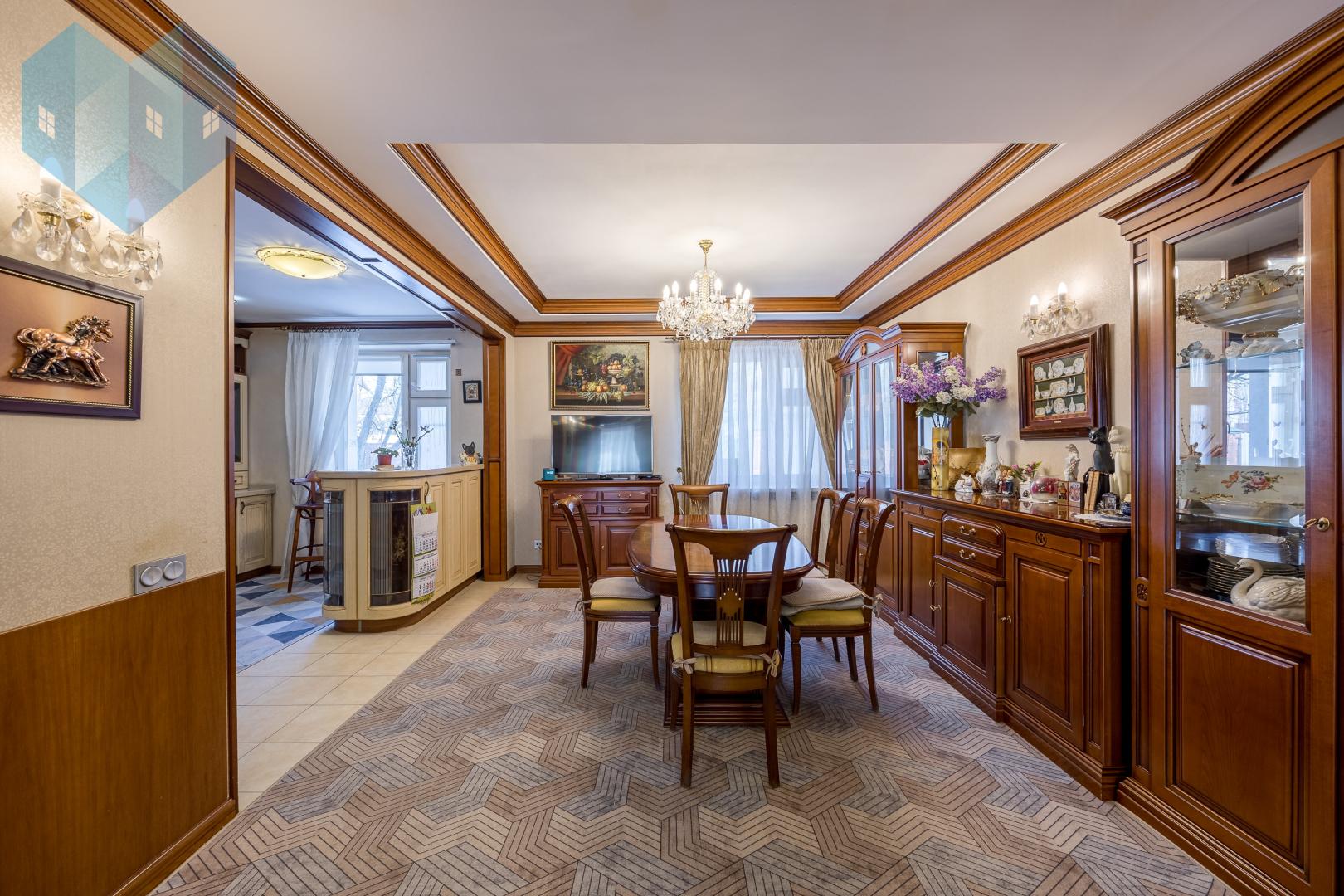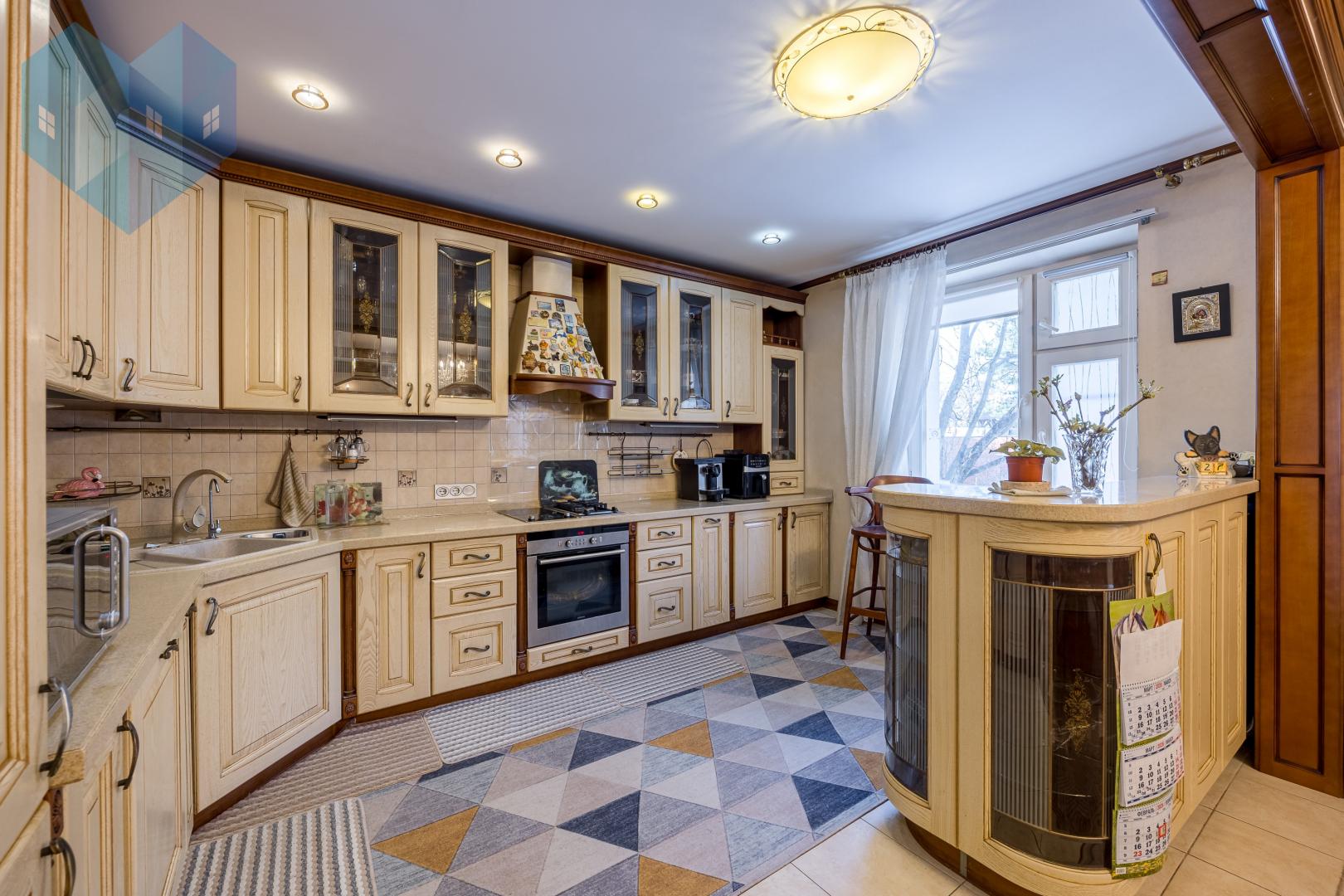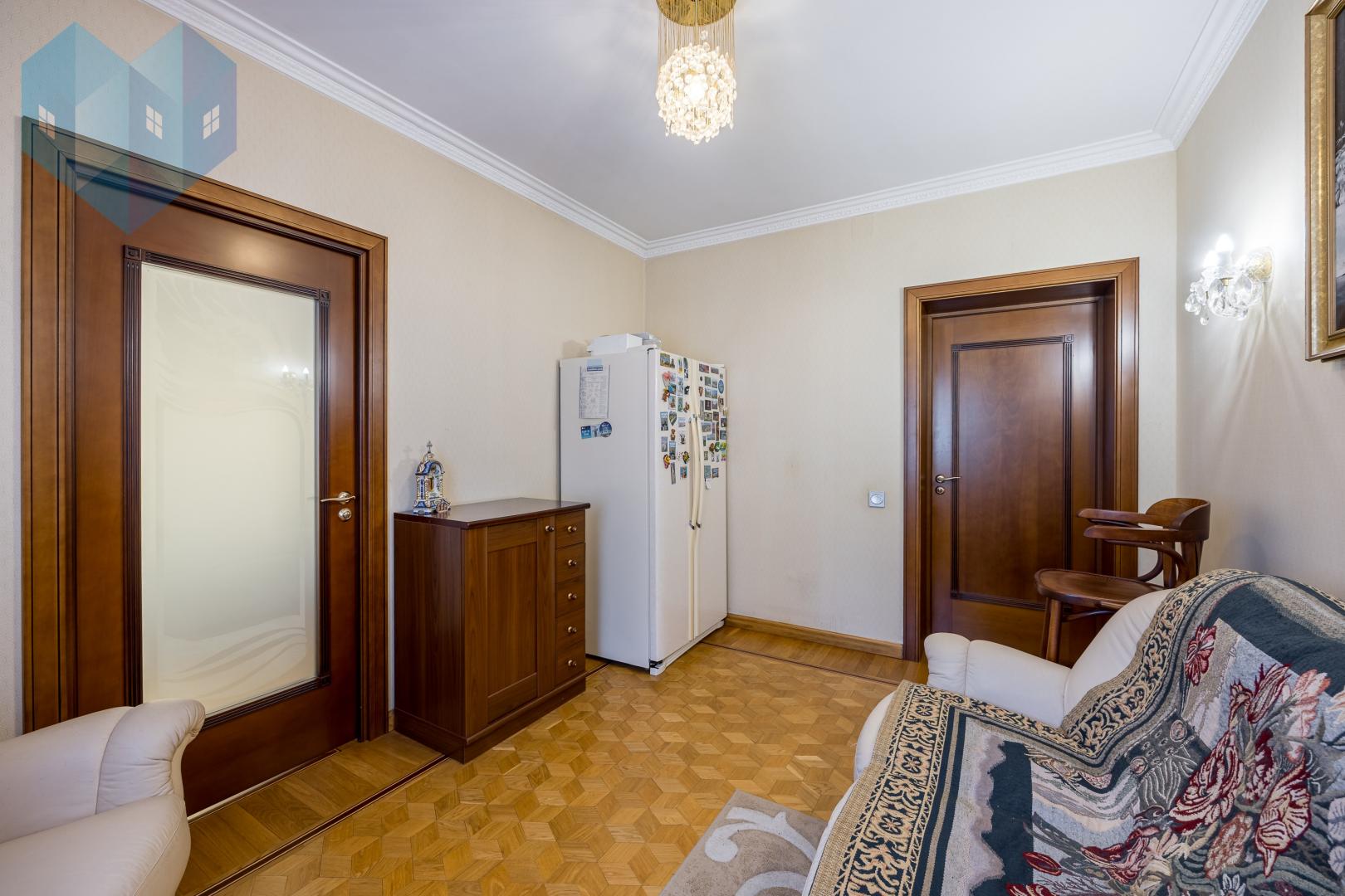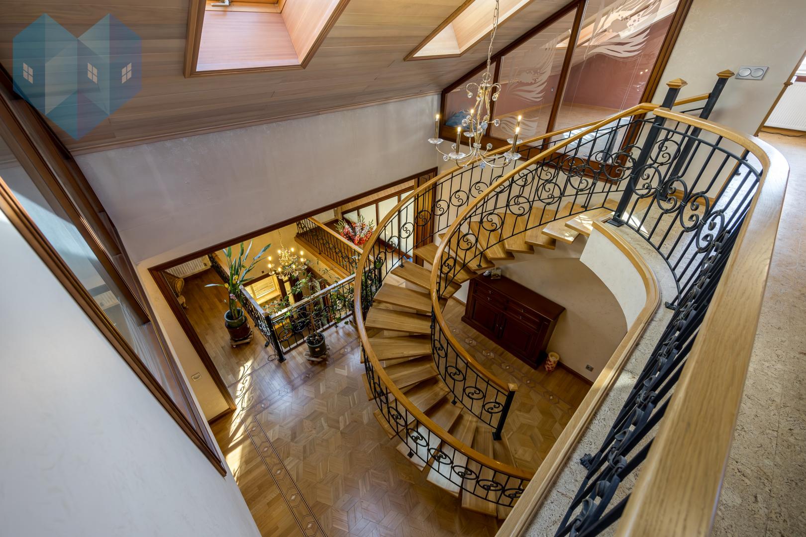 Во внутренней отделке дома использованы премиальные материалы: художественный паркет, венецианская штукатурка, тканевые обои, двери и мебель из массива.