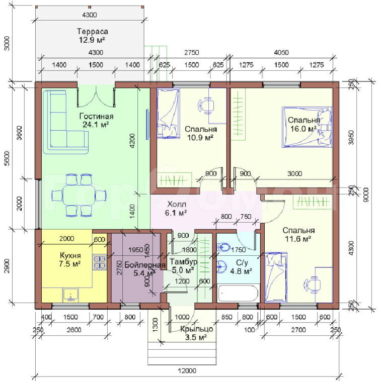 Площадь дома: 100 м2
