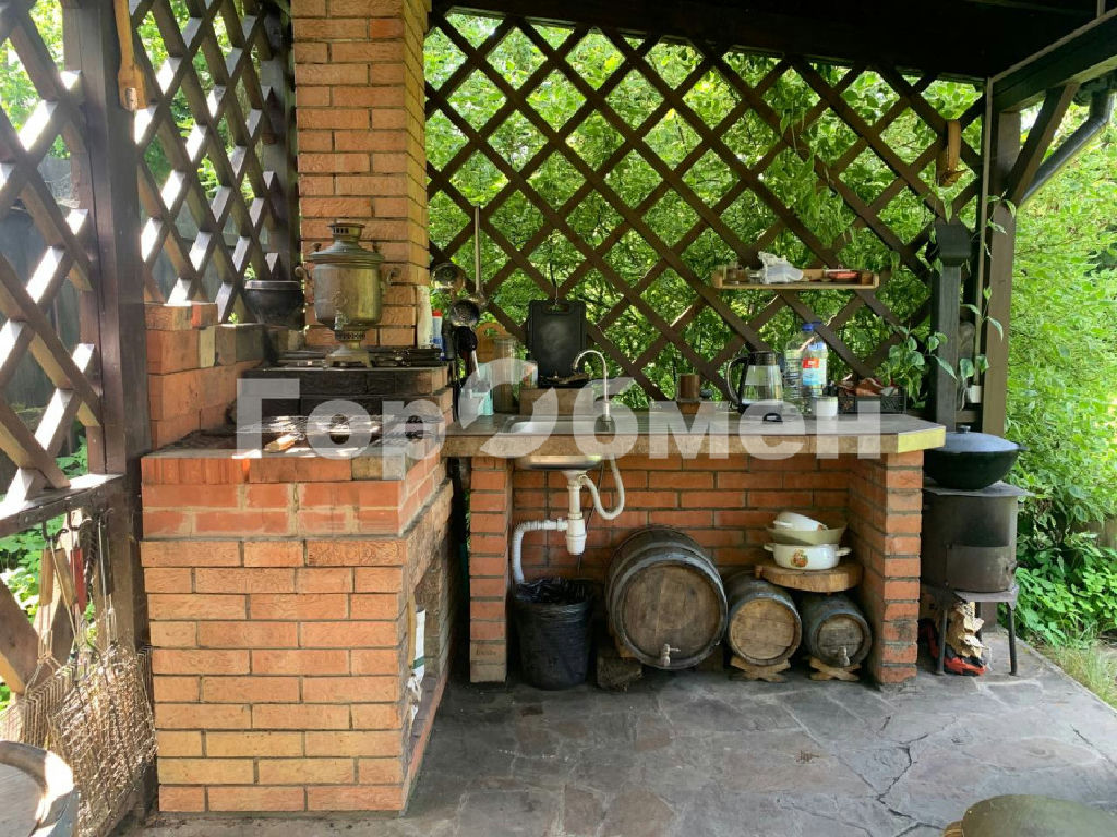 просторная беседка с летней кухней и водопроводом;