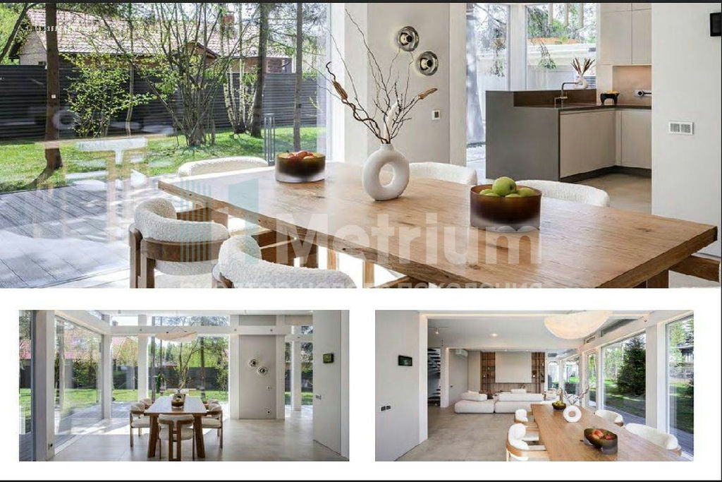 Высококачественная отделка, эксклюзивное цветовое решение стен, установлена современная кухня от Giulia Novars, полностью укомплектованная шведской техникой ASKO, встроенной док-станцией с роботом-пылесосом и беспроводной зарядкой для телефона. Столовая-гостиная полностью укомплектована стильной мебелью, есть и культовая кушетка Ле Корбюзье LC4, названная "машиной для расслабления" - икона дизайна ХХ века, занимающая место во множестве музеев дизайна по всему миру. Полы второго этажа дубовая инженерная доска. Деревянные конструкции обработаны премиальным экологически чистым маслом OSMO, тактично подчеркивающим фактуру натуральной древесины. Для комфортного проживания установлены кондиционеры Kentatsu(Япония) и автоматические приточные клапаны Aereco(Франция). Безопасные энергосберегающие просветленные стеклопакеты с тёплой дистанционной планкой и заполнением аргоном. Двери SHUCO (Германия). Современный газовый котел De Dietrich с обвязкой нержавейкой, бойлер Bosch. Насосные группы HANSA. Арматура TECE, разводка бесшовными трубами Rehau. Возможность оптимального микроклимата в помещениях с помощью дистанционно управляемых сервоприводов с удаленным контролем со смартфона. Система автоматической блокировки при протечке в любом из
