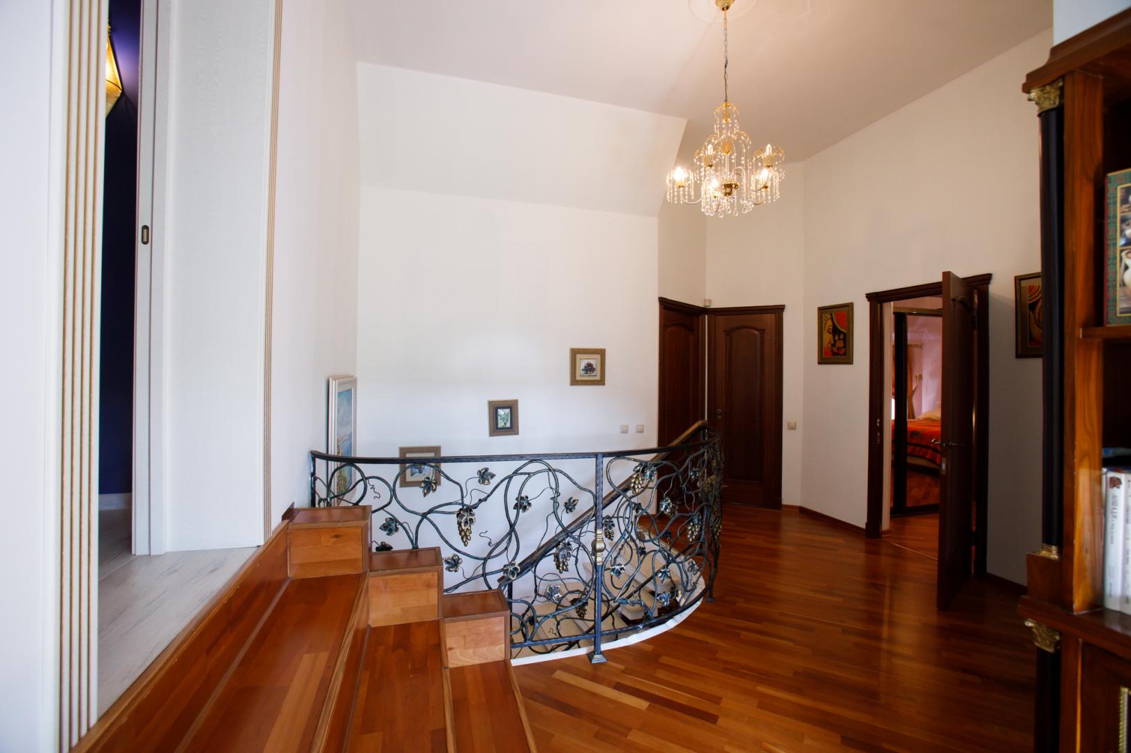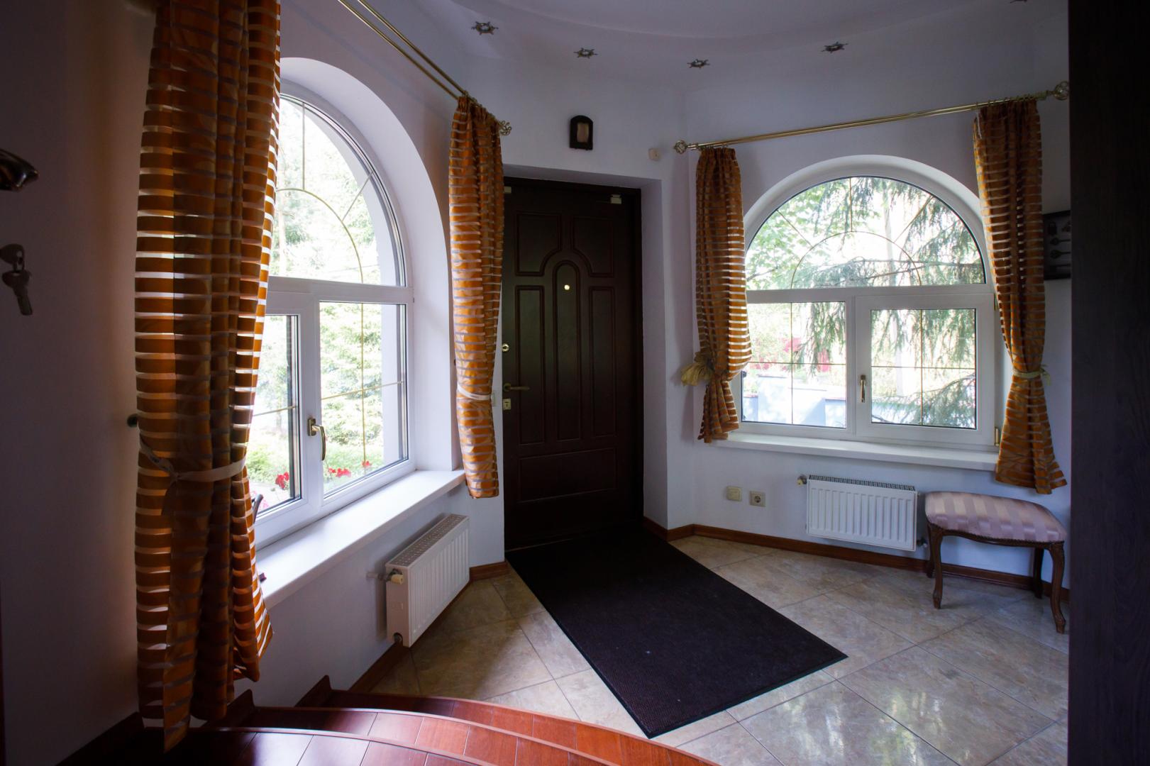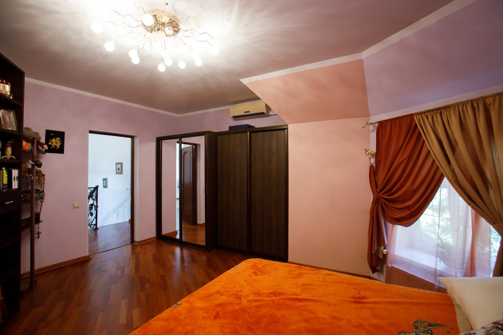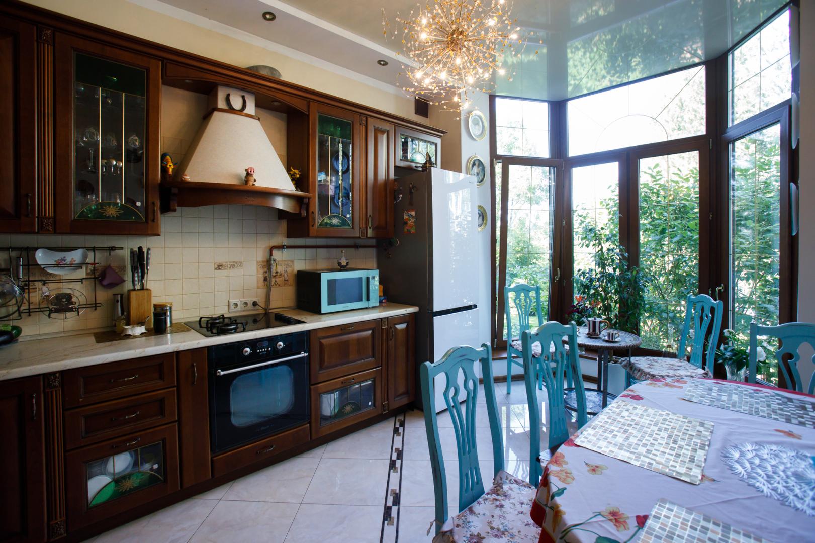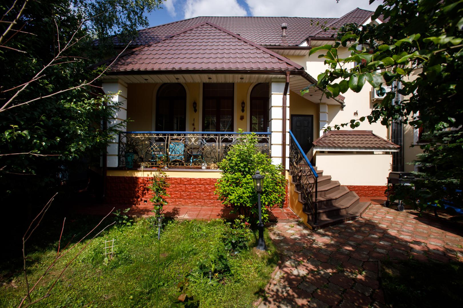 КОТТЕДЖ 2015 года постройки, двухуровневый 348.3 кв.м в классическом стиле с витражными онами – из добротного кирпича, отличная шумоизоляция стен (ширина 50 см), перекрытия железобетонные, фундамент бетонный, крыша металлочерепица, залита чаша под закрытый бассейн в доме. Летняя веранда с деревянным настилом под крышей, кованым ограждением и местом под барбекю. Натяжные потолки, пол дубовый паркет, окна тройной стеклопакет Rehau, стены под покраску. Функциональная планировка: подвал – котельная, прачечная, кладовые, первый этаж – гостиная с действующим камином, гостевой санузел, просторная кухня с эркером и панорамным остеклением во двор, огромный зал с выходом на террасу, второй этаж – три гостевых спальни, хозяйская спальня с гардеробной и ванной комнатой. В доме имеется вся мебель, техническое и сантехническое оборудование.