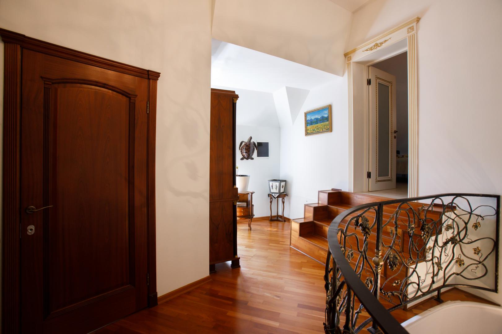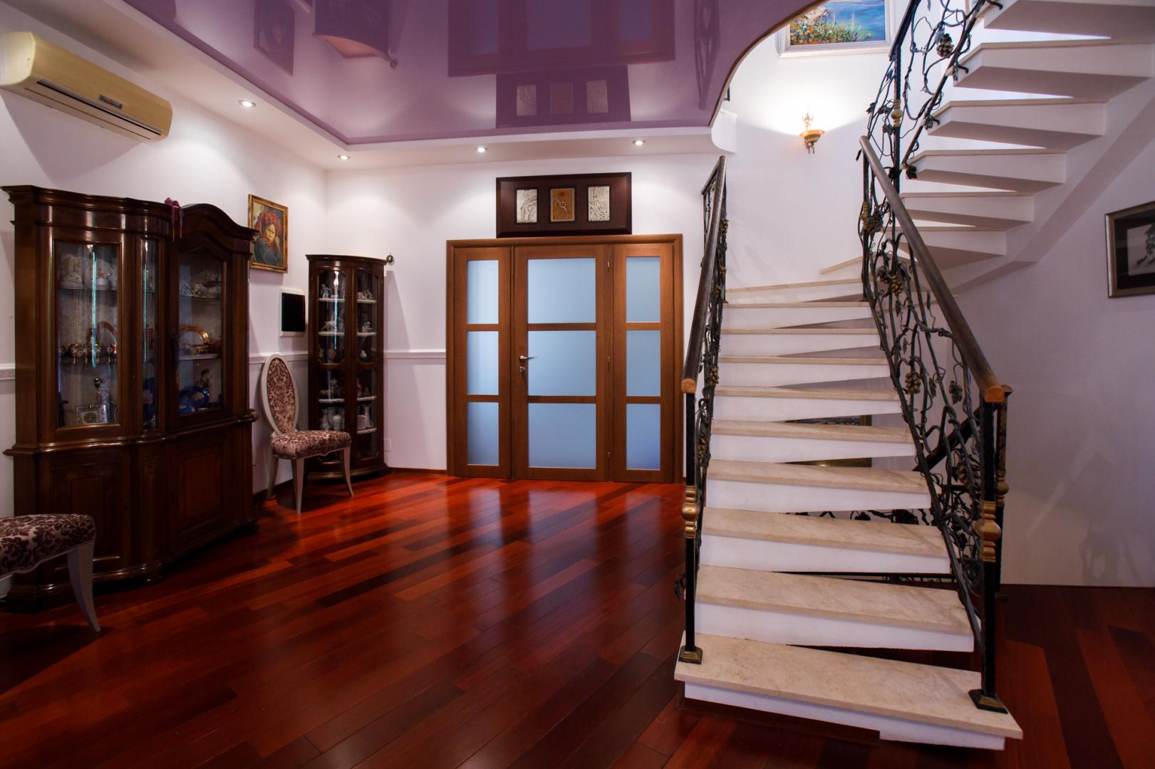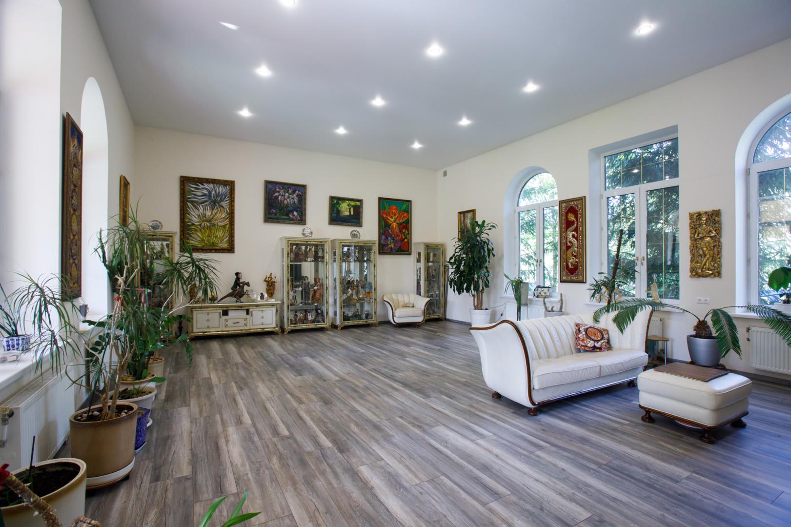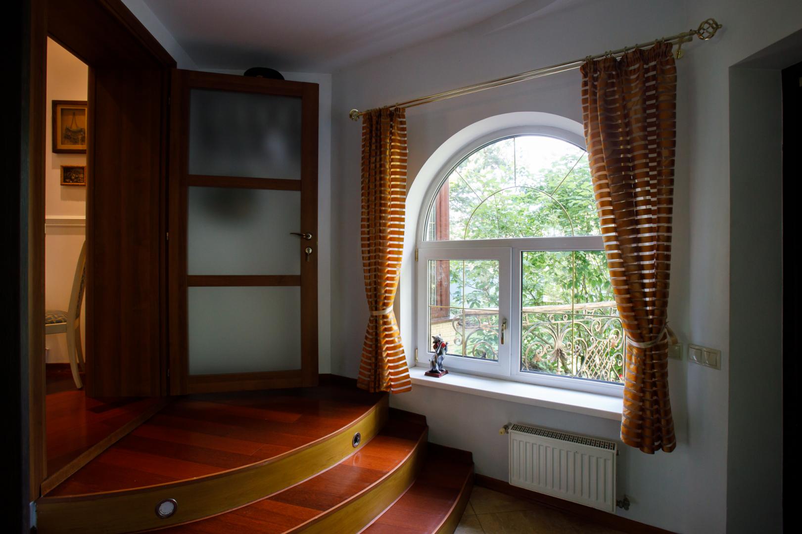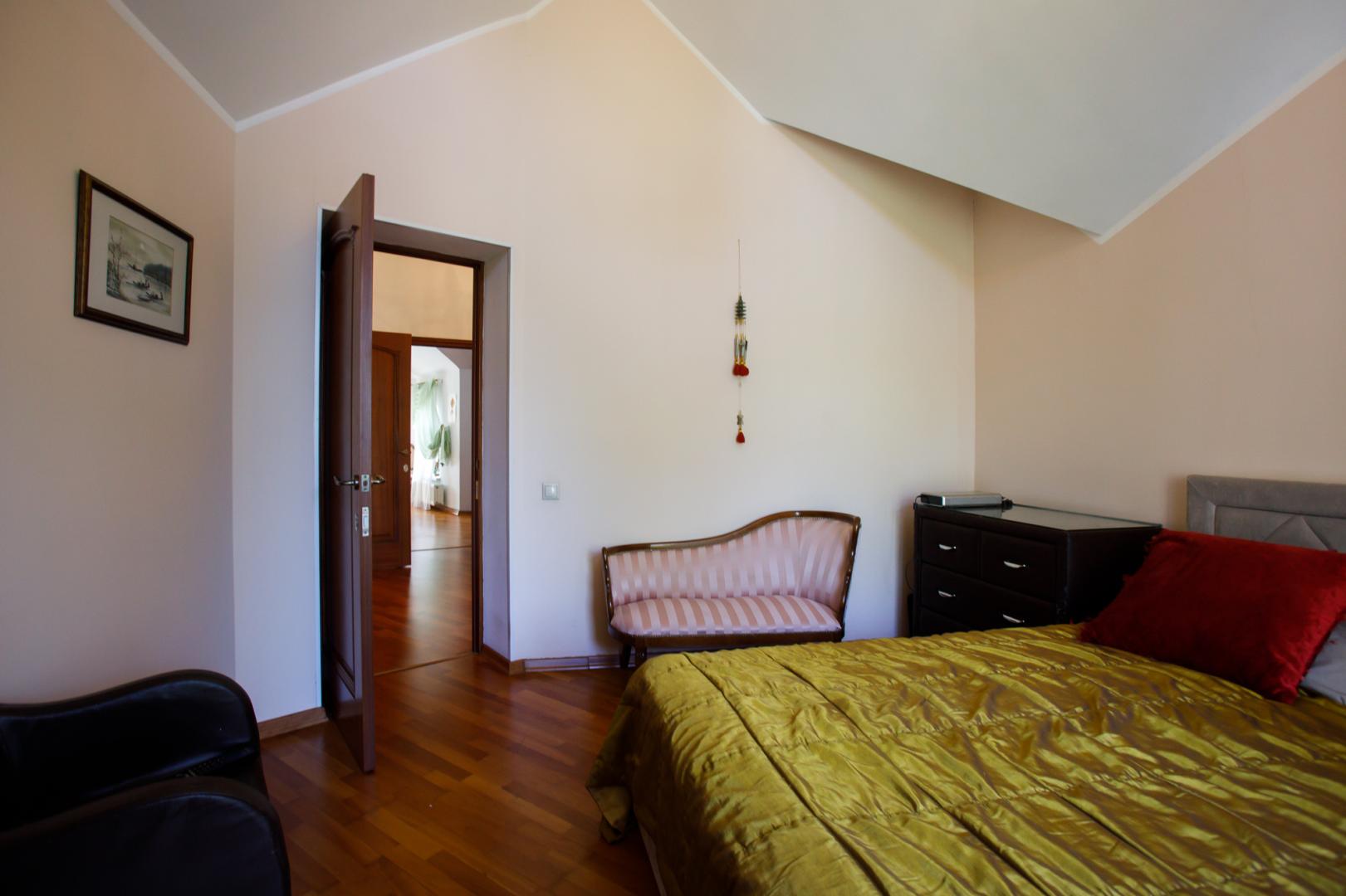 КОТТЕДЖ 2015 года постройки, двухуровневый 348.3 кв.м в классическом стиле с витражными онами – из добротного кирпича, отличная шумоизоляция стен (ширина 50 см), перекрытия железобетонные, фундамент бетонный, крыша металлочерепица, залита чаша под закрытый бассейн в доме. Летняя веранда с деревянным настилом под крышей, кованым ограждением и местом под барбекю. Натяжные потолки, пол дубовый паркет, окна тройной стеклопакет Rehau, стены под покраску. Функциональная планировка: подвал – котельная, прачечная, кладовые, первый этаж – гостиная с действующим камином, гостевой санузел, просторная кухня с эркером и панорамным остеклением во двор, огромный зал с выходом на террасу, второй этаж – три гостевых спальни, хозяйская спальня с гардеробной и ванной комнатой. В доме имеется вся мебель, техническое и сантехническое оборудование.