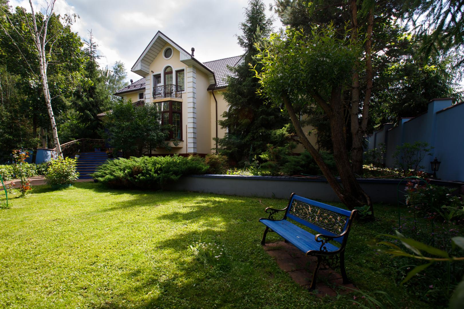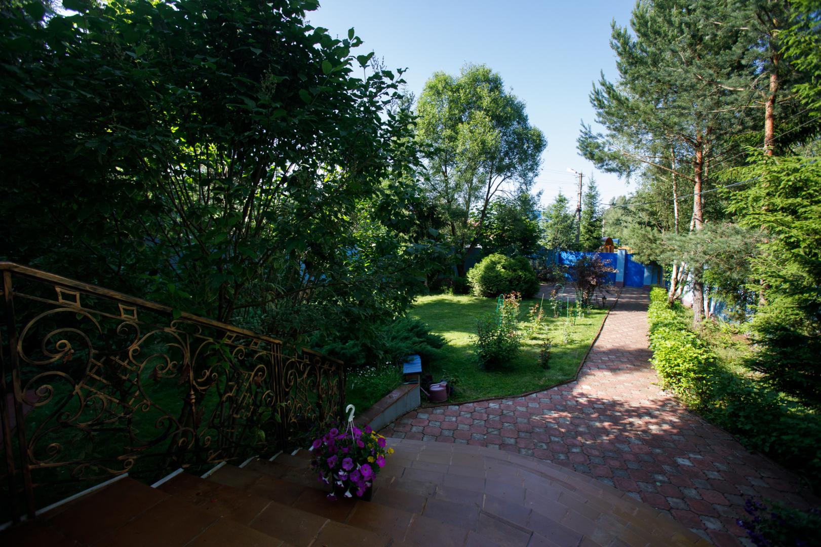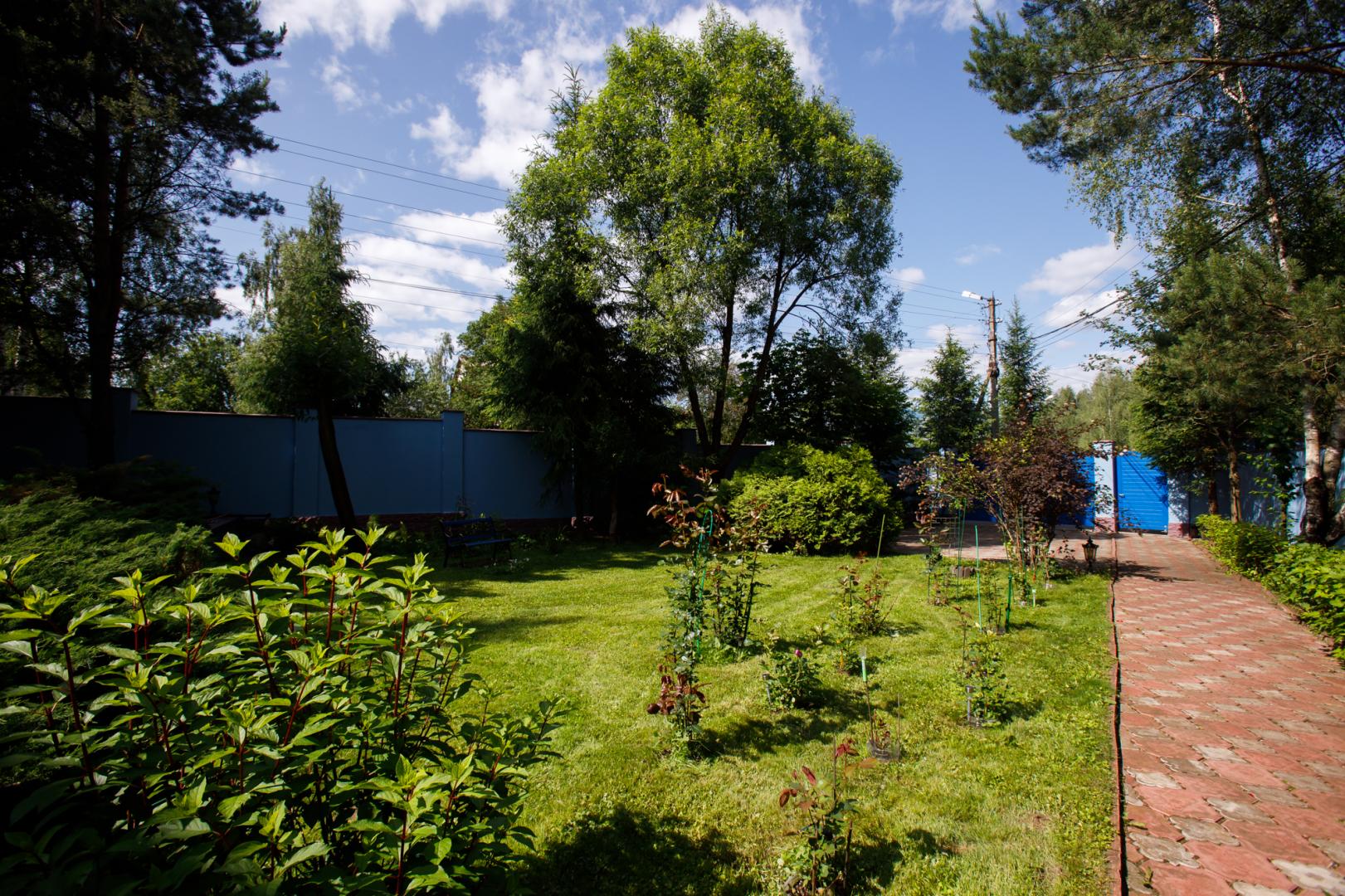 УЧАСТОК 875 кв.м для ведения садоводства и огородничества, огорожен кирпичным забором и оборудован автоматизированными электрическими воротами. Предусмотрено место для парковки на два машино-места во дворе и два машино-места за воротами. Ухоженная территория с освещением, луговым газоном, лавочками для отдыха. По периметру и на участке растут деревья - каштан, березы, сосны, ели, клен, ива. Благоухают кустовые розы, пионы, сирень. Радует глаз гортензия, азалия, ромашки, можжевельник. Соседи живут круглогодично.