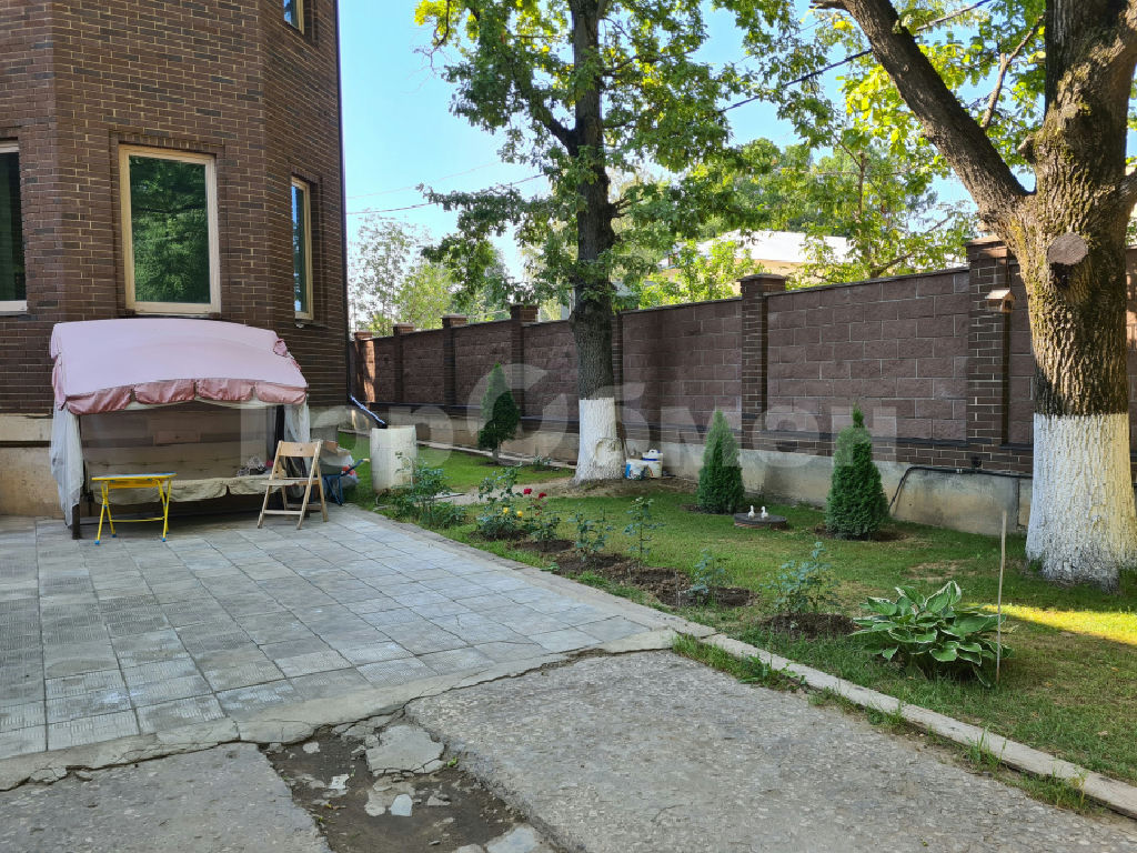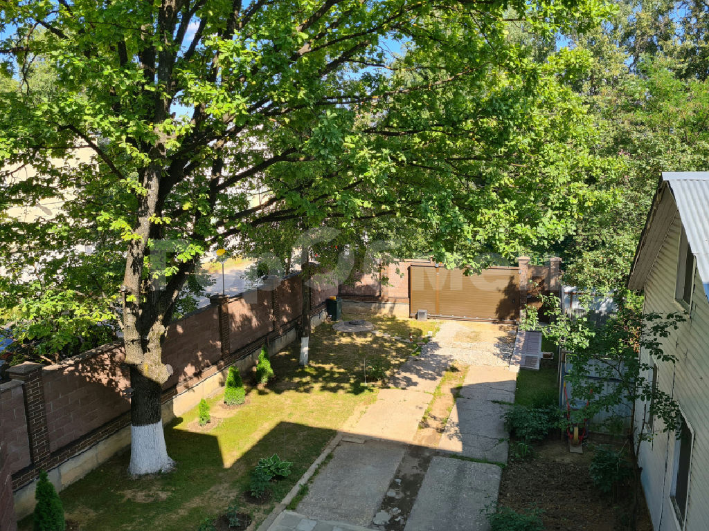 Дом построен на участке 8 соток. Обустроены дорожки. Высажены деревья и кустарники: туи, сосны, можжевельники, ёлки, дубы. На участке выполнен дренаж.