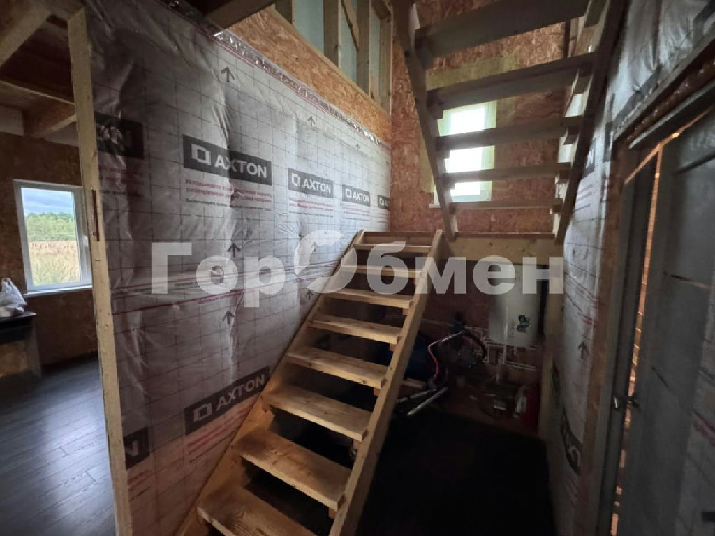 Внутри частичная отделка:тёплый пол(электрический),разведена проводка,установлены розетки,выключатели, установлен боллер горячий воды.Заведён и разведен водопровод,канализация(септик).На первом этаже уложен ламинат и керамогранит.Санузел отделан полностью.