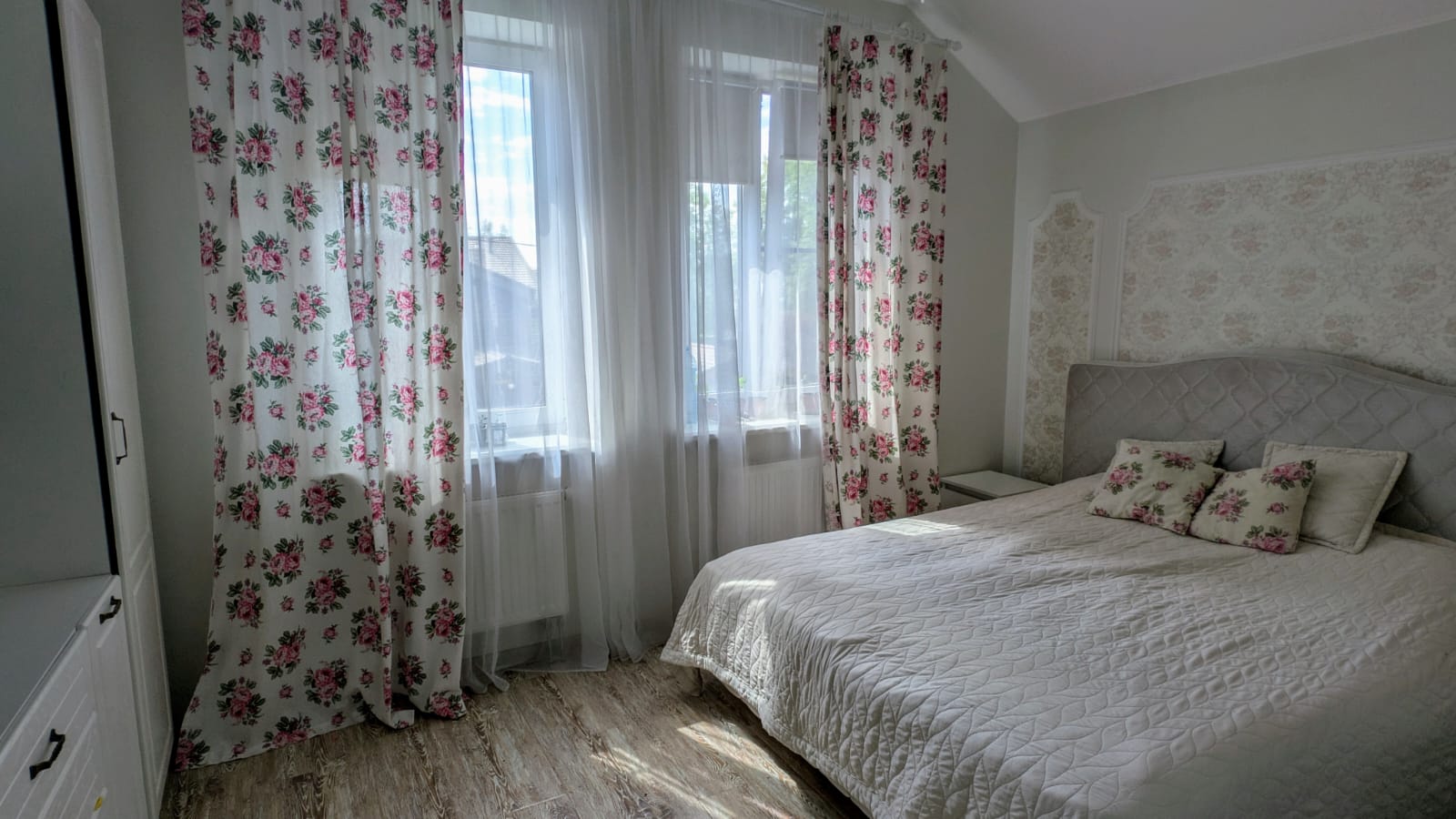 Планировка: 4 спальни, кабинет, кухня - гостиная с камином. Коммуникации: канализация - септик, водоснабжение - скважина, газ.