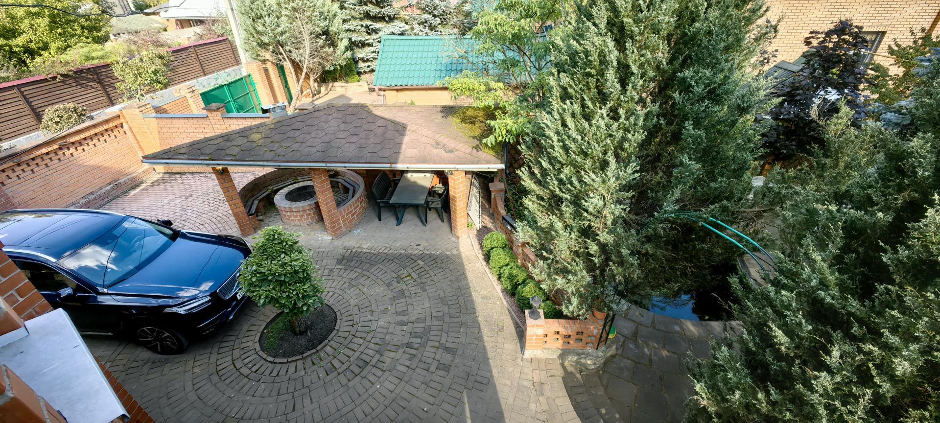 - открытая беседка (кирпич) с костровой чашей,