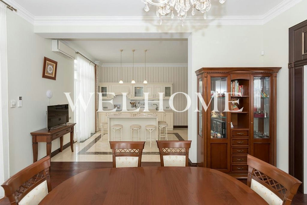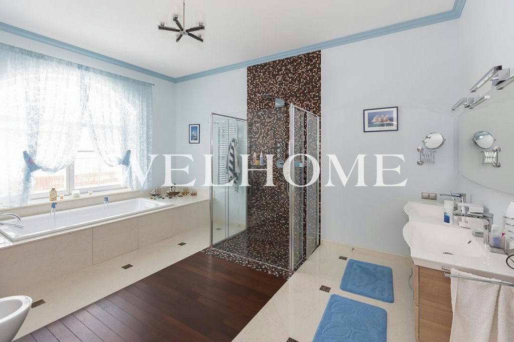 ID объекта на сайте Welhome: Z-14027. Предлагается современный дом под ключ в элитном поселке с инфраструктурой. Выполнена отделка с использованием дорогих и качественных материалов (использованы натуральное дерево, мрамор и т.д.), изысканные итальянские мебельные гарнитуры, укомплектован актуальной модульной техникой ведущих современных производителей.На участке выполнены необходимые работы по благоустройству и озеленению, базовый ландшафтный дизайн: установлено ограждение по периметру, дренаж, система полива, уложен газон, высажены деревья.Поэтажное описание: 1 этаж: холл, гардеробная, кухня-столовая с выходом на террасу, гостиная, санузел, бойлерная, гараж на 2 м/м;2 этаж: холл, 3 спальни, 3 санузла, кабинет.