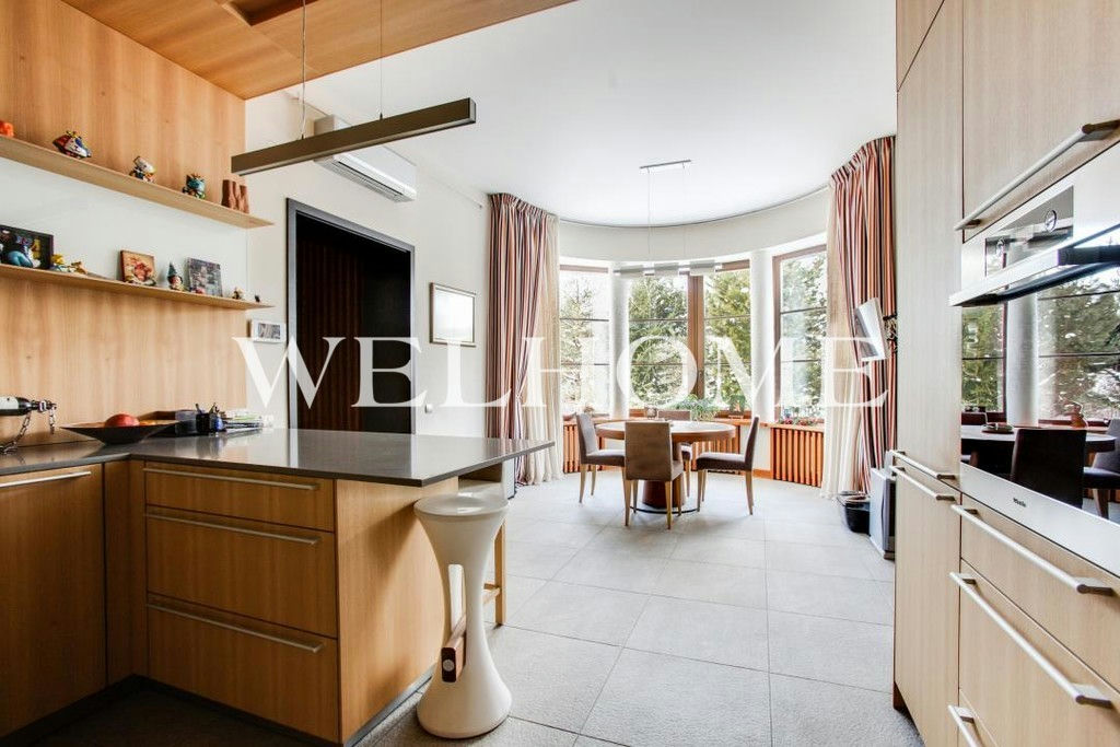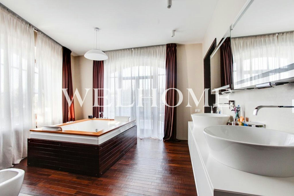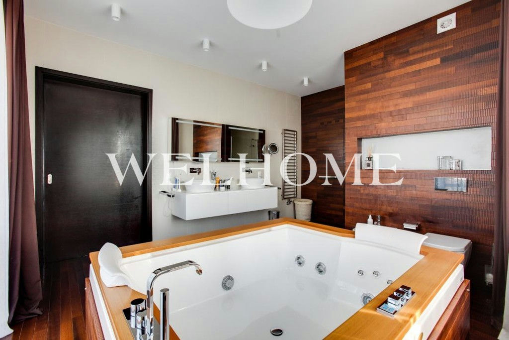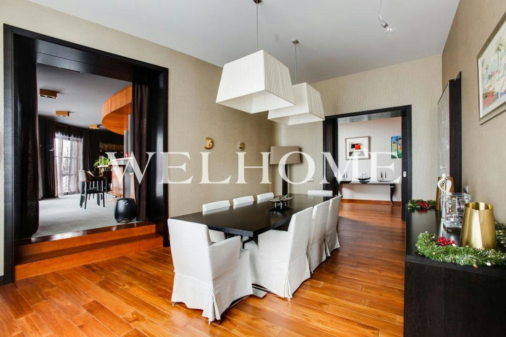 ID объекта на сайте Welhome: Z-14799. Предлагается новый дом, с мебелью, на ландшафтном участке в элитном поселке.Функциональная планировка предусматривает наличие просторной гостиной со вторым светом и выходом на патио, столовой, кухни, кабинета, кинотеатра, 4 спален. Готов к проживанию: меблирован, укомплектован необходимой техникой современных производителей премиум-класса.Интерьер выполнен в современном стиле, в отделке использовались качественные и натуральные материалы. На участке выполнен ландшафтный дизайн. Предусмотрен гараж на три машиноместа и квартира для персонала.