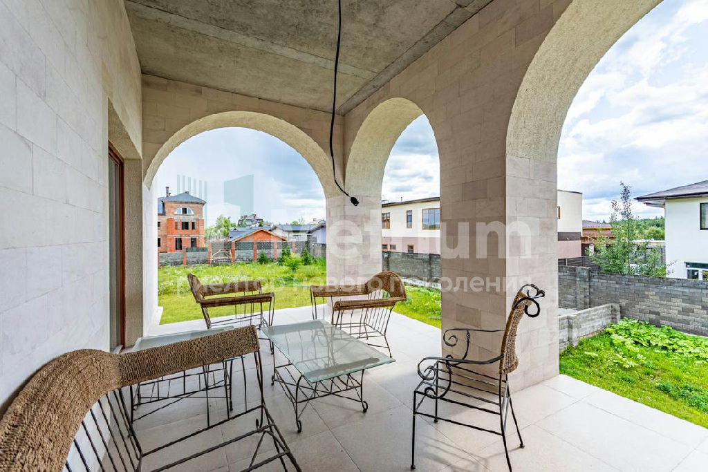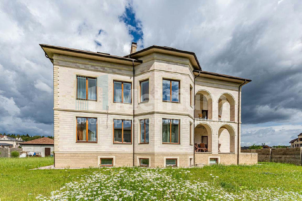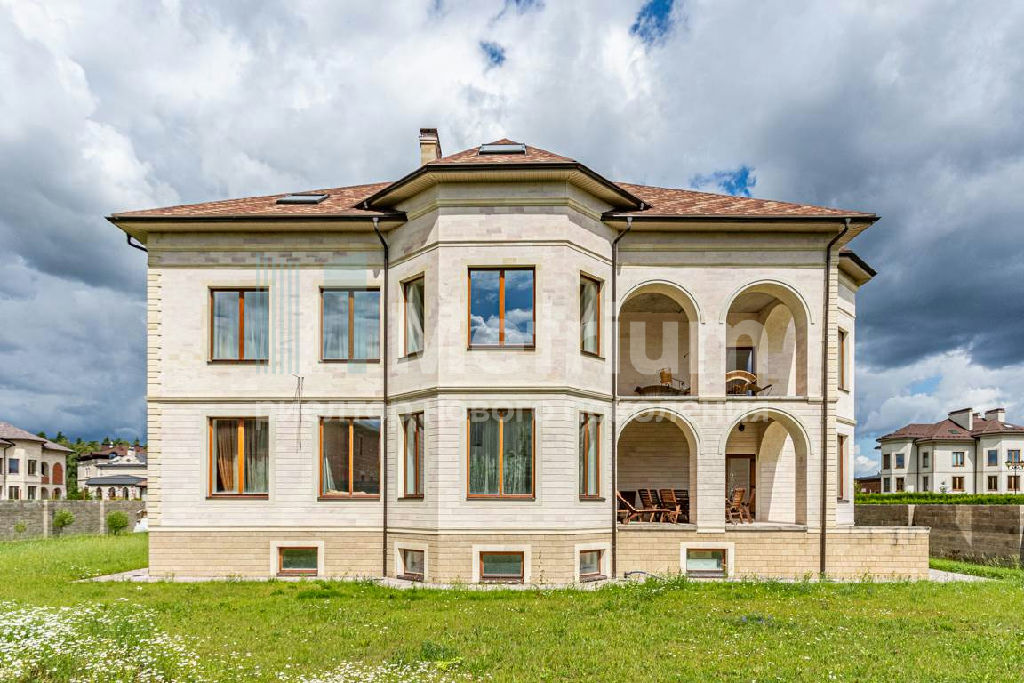 ID 12002 Дом в коттеджном посёлке Шато Соверен, площадью 740 кв.м. На участке есть отдельностоящий гараж на 2 машиноместа. Общая площадь участка 20,5 соток. Коттеджный посёлок Chateau Souverain имеет два выезда на Новорижское и Ильинское шоссе. Фасад дома облицован натуральным камнем. Дом 4 этажа (полноценный цокольный этаж с окнами и мансардный этаж с высокими потолками до 6 метров).