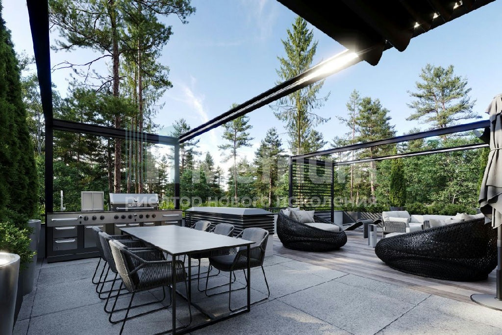 ID 13383 Дом в коттеджном поселке "Лесные зори" с панорамным остеклением и просторными террасами. Участок лесной с высокими соснами. Этот дом можно довести " под ключ" с учётом ваших пожеланий. Охраняемый поселок, асфальтированный проезд, детская и спортивная площадка. Развитая инфраструктура района: школы, детские сады, магазины, аптеки, строительный и продуктовый рынок, салоны красоты, рестораны, парки.