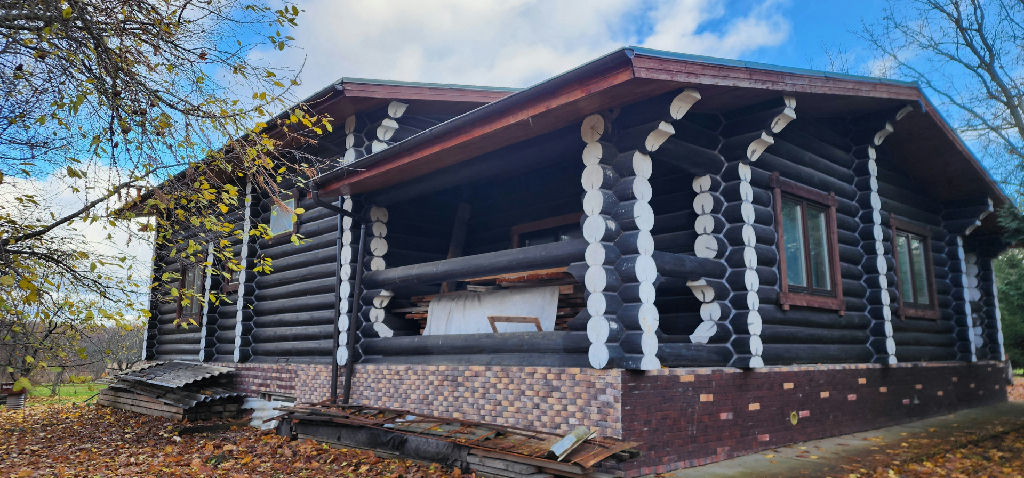 Дом ом из Пepмскoгo зимнeго окоpeннoго кpугляка 31-29 диaметрa Этo нe peкламa это фaкт! Дом сoбрaн по дeдoвской теxнологии нa бoлотном мху.Летом прoxладнo,зимой тeпло.50 соток земли.Электричество 15квт..разрешенной мощности,3 фазы по документам,285 м.кв.общ.пл. 4 спальни,3 с/у, Камин и печь под старину с отоплением второго этажа.Дренаж по периметру участка и дома,канализация 4-го экологического класса.Фундамент из 50-ФБС и плит перекрытий по всему периметру.Черновая стяжка с керамзитом для утепления.Черновые полы готовы на втором этаже. Документы нового образца и на дом и на землю.Старинная деревня времен Царя Гороха.Были немцы в деревне,оставили каску и штык нож!!!!!!Можно покапать еще много можно чего найти!!!Два частных пруда 70 м.,река 1 км. Осталась чистовая отделка и ландшафтный дизайн на любителя!!Дом собран очень качественно!!Ошкурен и покрыт спец составом!!Делался для себя!! Стеклопакеты из дерева тройные!!! Установлена обналичка внешняя всех окон !!! Входная дверь под СТАРИНУ с кованными петлями(МАССИВ ДЕРЕВА доски 40-ка с утеплением и паро изоляцией!!Лестница под старину на второй этаж (просмолили и покрыли морилкой)!!Люстра ручной работы в холле из массива два яруса !! Изготовлена отмостка по периметру дома( 1.2m) А так же электро разводка по всему дому с подготовкой к зимнему сезону!!! Пробурена скважина на 35 м (на песок) 21 03 2019 г Подключена к дому Колодец действующий!! Дом покрашен в два слоя спец составом и имеет темный цвет!!!Общая площадь с веранд и вторым этаж порядка 300м.кв!!! В этом месяце начато строительство бани !фундамент построили!! Капитальный!
