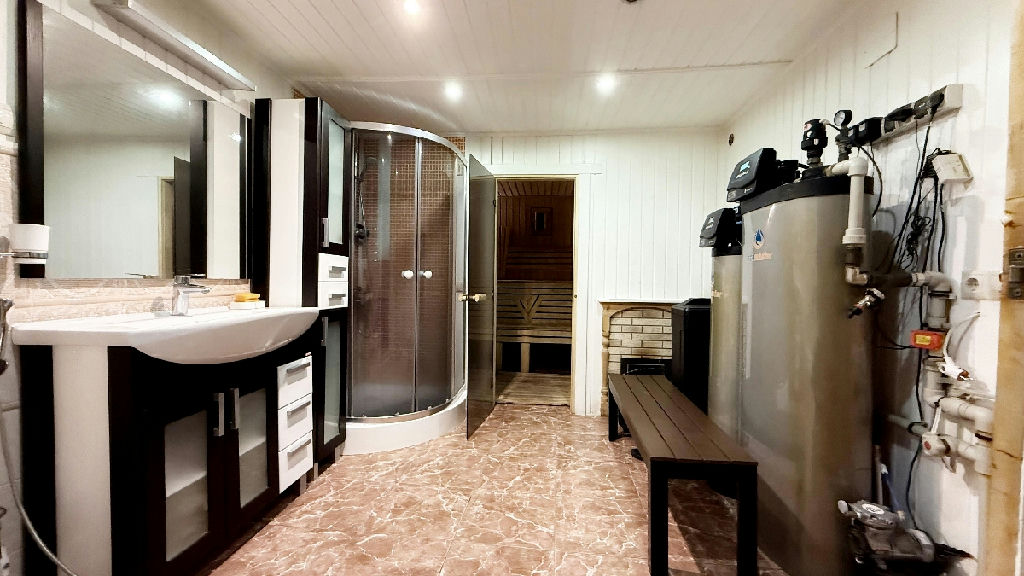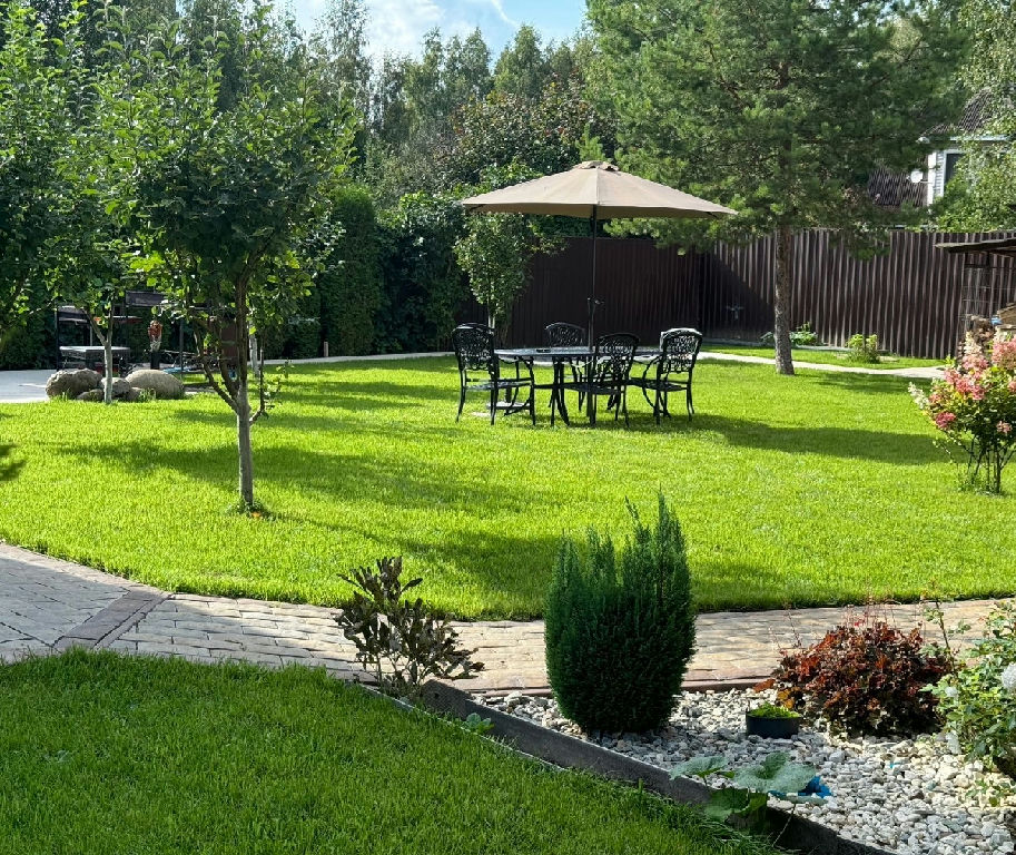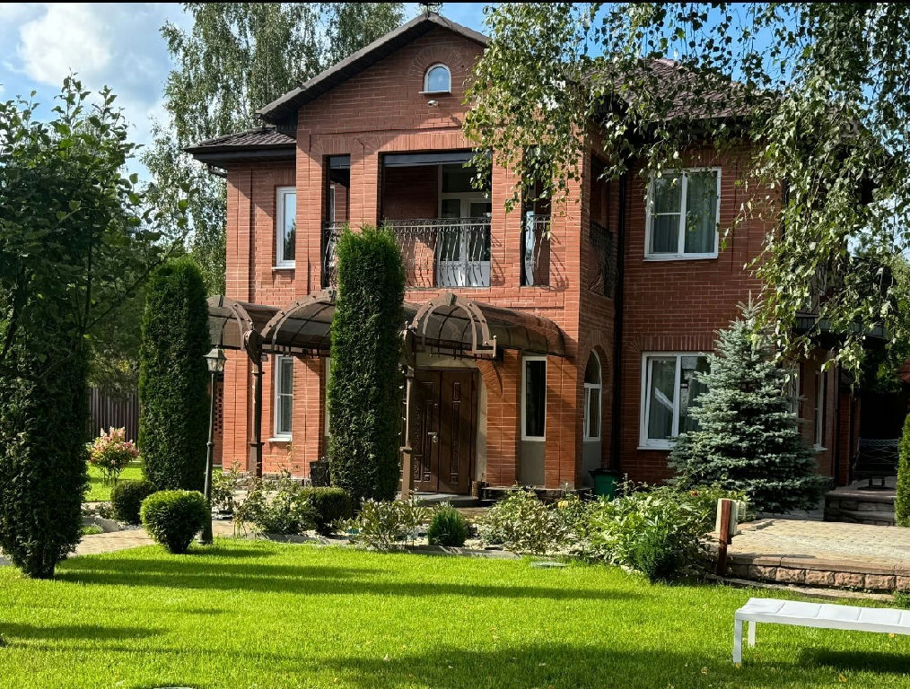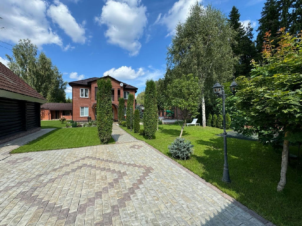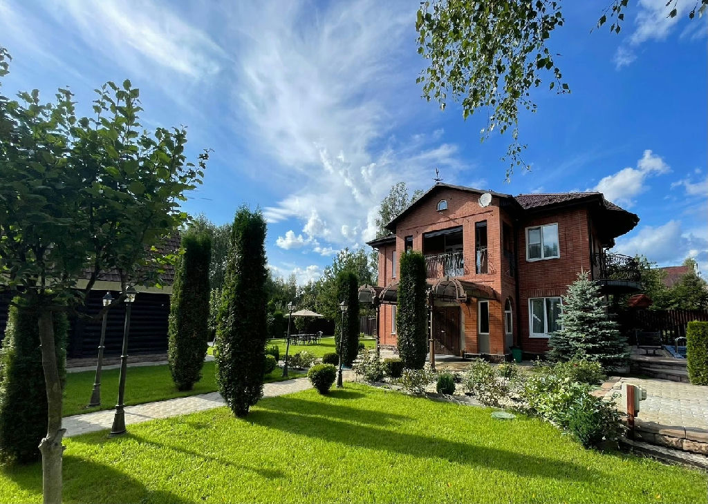 ОН 22423. Загородный Дом - усадьба, расположенный в Истринском районе, в 35 км от МКАД по Новорижскому шоссе. Участок находится в уникальном месте - первая линия от огромного лесного хвойного массива (30 га), в пешей доступности большое цветочное поле с протекающей речкой - Истра, в 15 минутах езды от дома - Истринское водохранилище. Дом кирпичный, два этажа, на бетонной шведской плите 70 см, крыша- металлочерепица, перекрытия бетон, 3 спальни, два балкона-ковка. В доме новый дизайнерский ремонт, теплый пол: первый этаж - керамогранит, второй этаж- деревянный паркет. А также на участке имеется: 1. Дом гостевой - деревянный сруб в два, с баней, душевой, санузлом 4. Домик для прислуги с панорамным окном, душевой, санузллом. 2. Гараж, теплый, с подогревом пола; 3.Беседка - барбекю, зимний вариант с теплым полом, печь барбекю. На территории - газ, септик, скважина 90 метров, уличный бетонный бассейн с системой фильтрации и очистки, спортивная площадка с инвентарем, видеоконтроль, проводной интернет, плодовые и декоративные деревья, ландшафтный дизайн, фонари, дорожки выложены английской брусчаткой, газон.