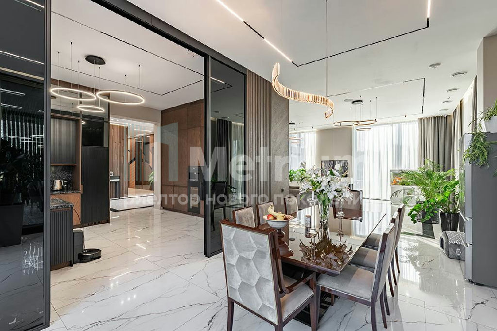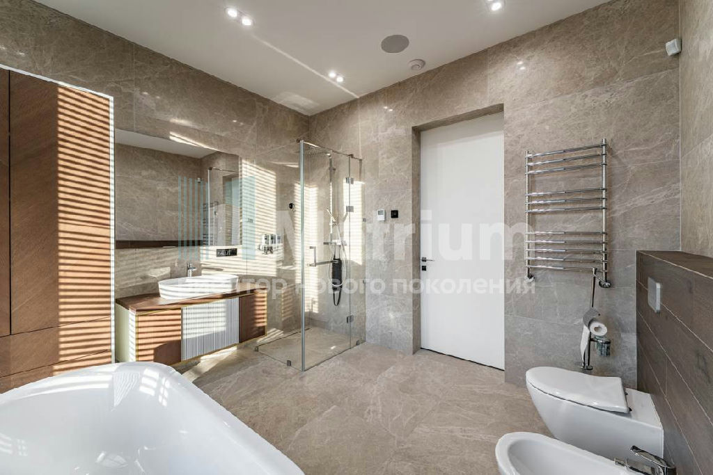 Планировка дома продумана до мелочей: на первом этаже расположены просторный холл, гардеробная, постирочная, современная кухня, столовая с выходом на веранду и дровяным камином-барбекю, гостиная с паровым камином, кабинет, гостевой санузел, котельная, гостевая спальня, и роскошная спа-зона (200 кв.м!) с бассейном 10х5 м, сауной, хамамом, тремя душевыми и зоной отдыха. Второй этаж включает в себя просторный холл со вторым светом, главный спальный блок (100 кв.м) с выходом на террасу, два детских блока с гардеробными и ванными, и гостевую спальню. Отдельно стоящий гараж на два автомобиля с квартирой для персонала и гостевая парковка на 8 машин обеспечат комфорт для вас и ваших гостей. Участок площадью 100 соток разделен на три зоны: въездная группа, придомовая территория с террасой и очагом, и большая лужайка с выходом к реке Истра.
