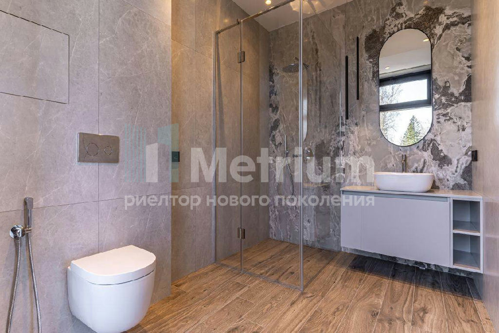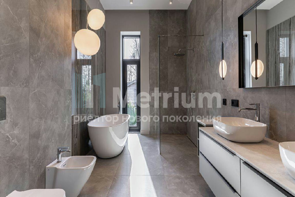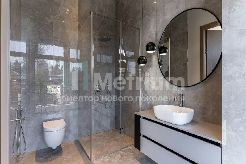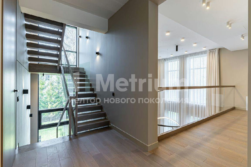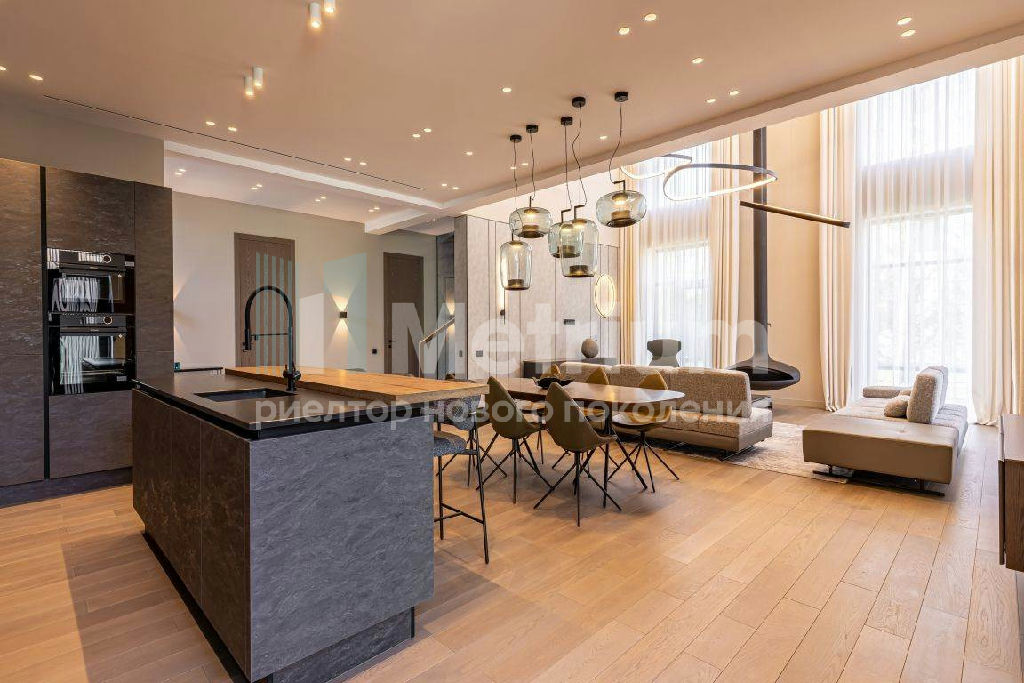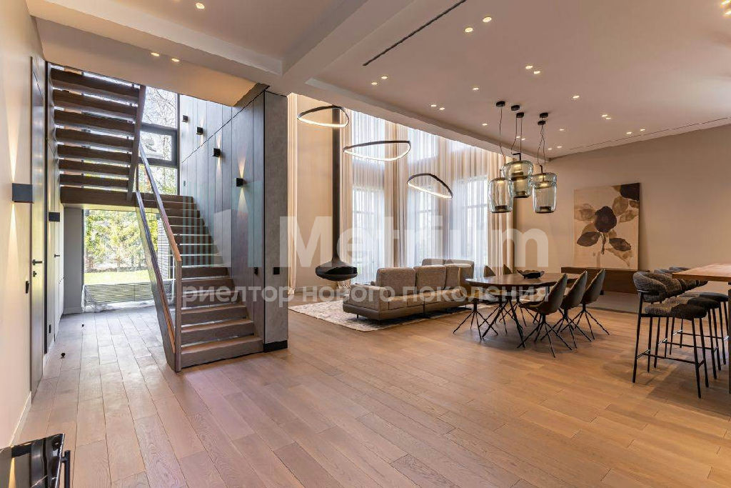 ID 7435 Дом построен в современном стиле со строгими и лаконичными фасадами. Эксплуатируемая кровля (275,74 кв.м.) позволяет создать зону для отдыха на свежем воздухе. Общая площадь строений с учетом эксплуатируемой кровли и СПА составляет 941,02 кв.м. Панорамное остекление делает помещения светлыми и ещё более объёмными. Из окон открывается гармоничный вид на ухоженный участок с ландшафтным дизайном. Монтевиль - невероятно зелёный коттеджный посёлок с парками, прудами и живыми изгородями - великолепное место для постоянной жизни на природе. Чистейший воздух, живописные природные пейзажи в удалённом от шумных дорог и производств районе Подмосковья делают одним из лучших мест для постоянного загородного проживания. На территории посёлка протекает река, вдоль которой обустроены велосипедные дорожки и прогулочные зоны. На берегу большого озера приятно отдыхать и купаться. Дети оценят современные детские площадки. В парках под кронами деревьев организованы спортивные площадки. Рядом находится лес с прогулочными дорожками. КП охраняется 24/7, ведутся патрулирование и видеонаблюдение. Работает собственная сервисная служба, которая решает технические и хозяйственные вопросы. Поблизости находятся учебные заведения, рестораны, магазины, фитнес - центры, салоны красоты, отделения банков и многое другое. Дорога до Москвы по Новорижскому шоссе занимает не более 30 минут.