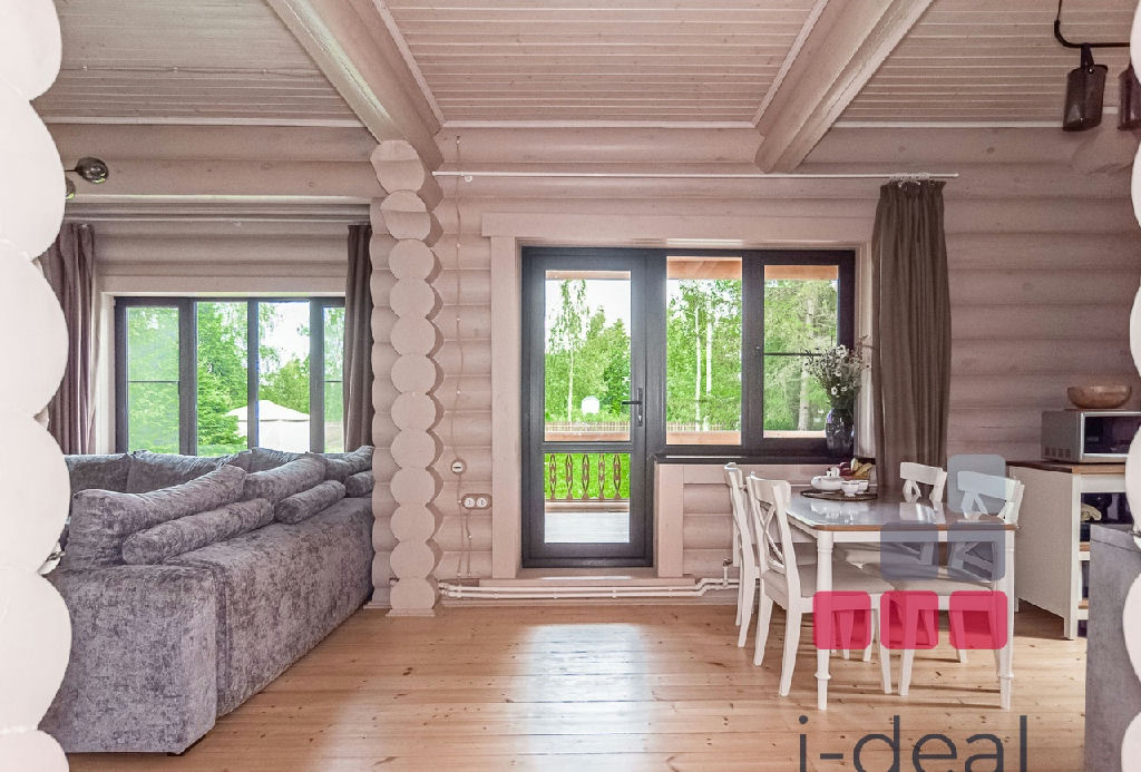 Id 4902. Предлагаем к покупке атмосферный и УЮТный дом в традиционном стиле из оцилиндрованного бревна в настоящем лесном поселке бизнес-класса "Хвойные дачи". У камерного поселка (42 дома которого выполнены в единой концепции) есть свой выход на озеро. Солидное окружение, тишина и гармония ждут вас.
