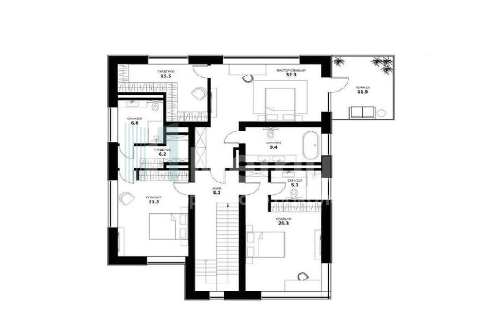 Дом предлагается в отделке white box. Планировка продумана до мелочей, обеспечивая эффективное использование пространства. Большие панорамные окна наполняют интерьер естественным светом, визуально расширяя пространство и создавая ощущение единения с природой.