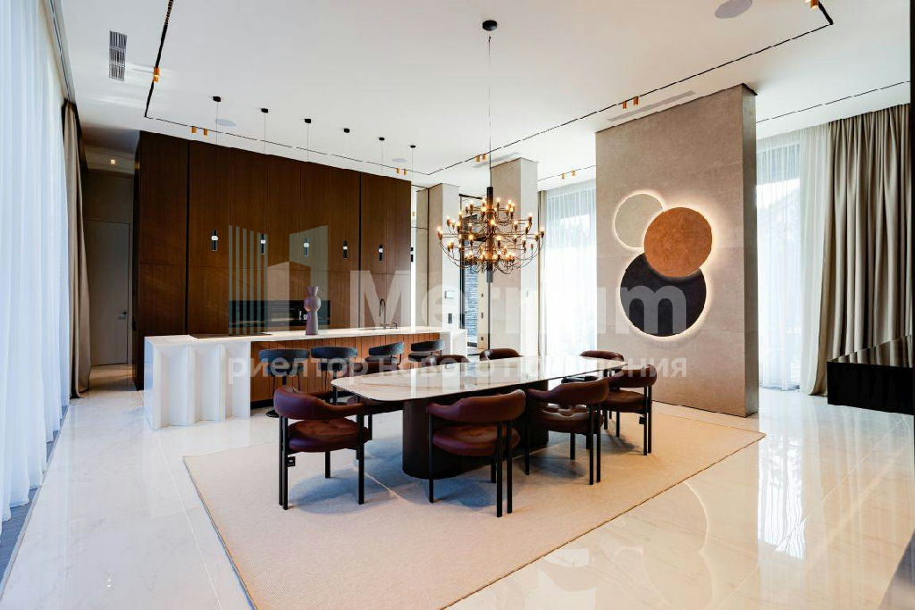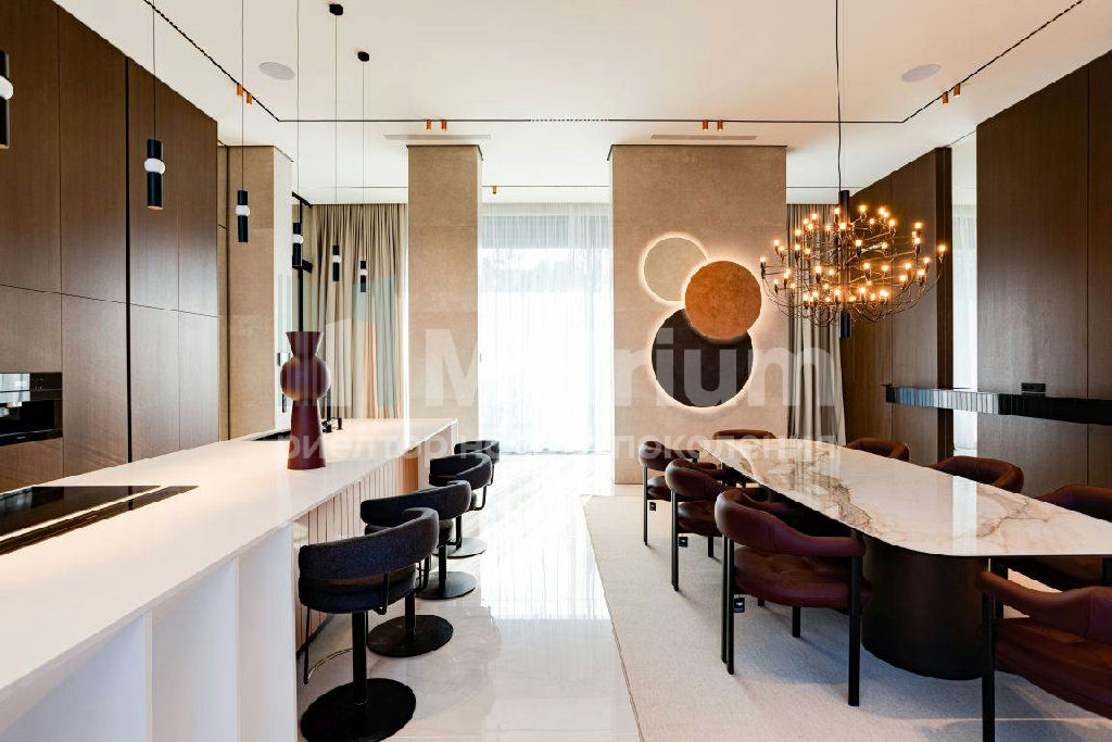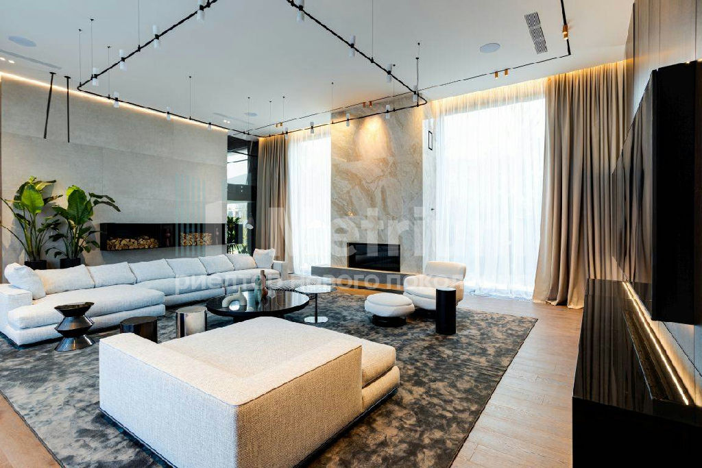 Композиция дома сформирована вытянутыми прямоугольными блоками, образуя изолированный от соседей приватный двор. Основные помещения в доме обращены во внутренний двор панорамными раздвижными стеклянными порталами. Планировочное решение дома имеет четкое функциональное зонирование. Внутреннее пространство разделено на приватную, общественную, СПА зону и блок персонала. В отделке фасадов применена крупноформатная керамика LAMINAM контрастных цветов и разноширокий термированный планкен. Большие площади остекления визуально связывают внутреннее пространство дома с улицей. Во внутренней отделке дома применяются качественные отделочные материалы - инженерная доска FINEX, керамика LAMINAM, натуральный камень, столярные изделия и панели, двери UNION. Дом оборудован приточно-вытяжной системой с канальным кондиционированием воздуха. В котельной установлены котлы Viessman. Мебель - MINOTTI, POLIFORM, MERIDIANI, Cattelan Italia. Освещение - CENTRSVET, Flos, Vibia. Сантехника - HANSGROHE, Villeroy&Boch, Salini. Бытовая техника - Miele, ASKO.