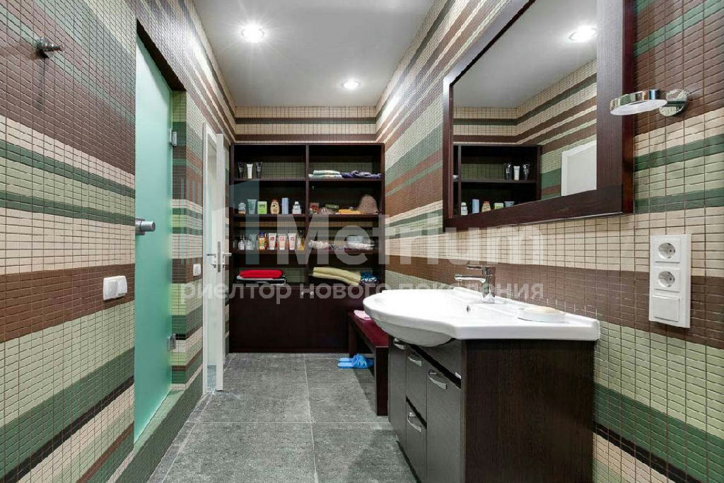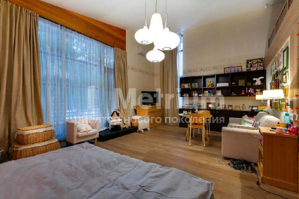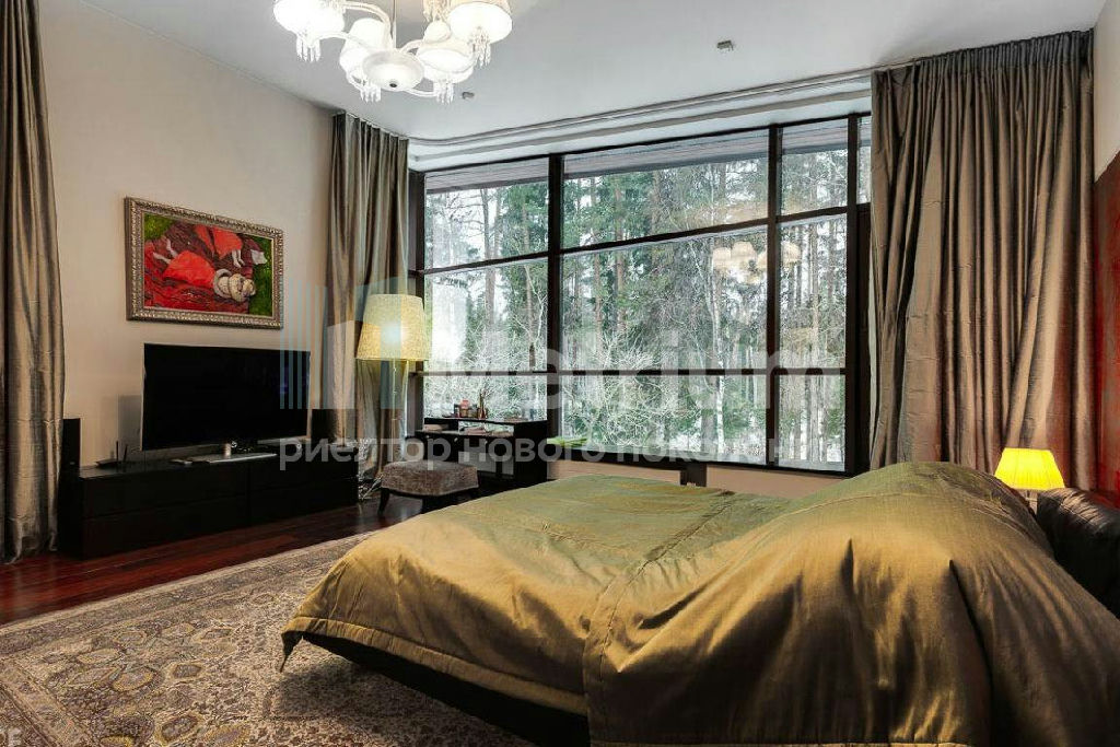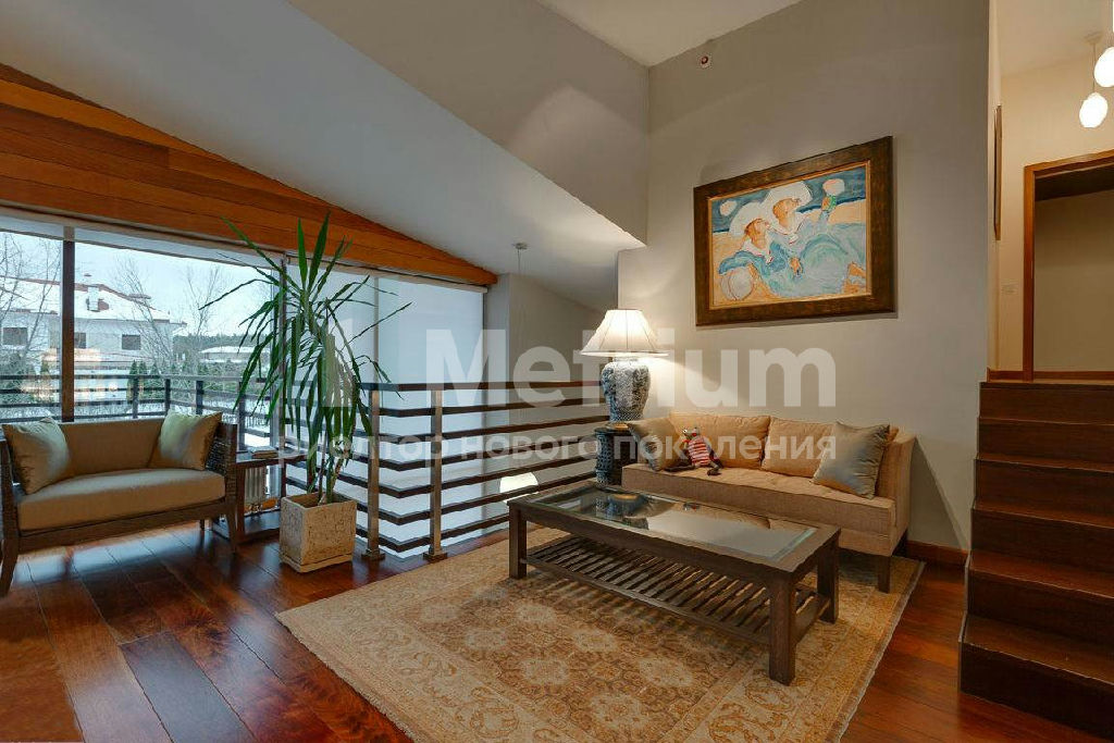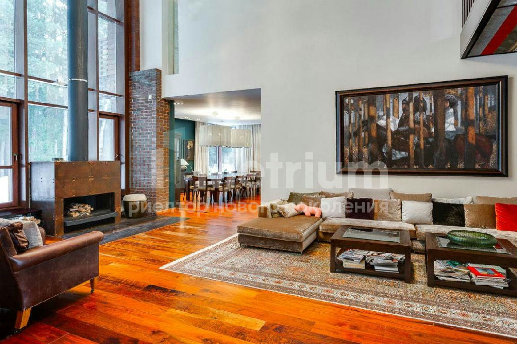 ID 9336 Стильный дом по индивидуальному проекту в элитном коттеджном поселке на Новой Риге. Дом полностью готов для проживания - гостиная с камином, 5 спален, SPA-зона с бассейном, роскошные террасы, отдельный блок для персонала.