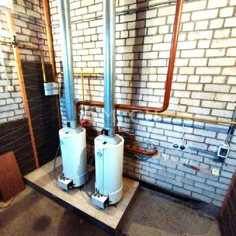 Большой гараж, котельная на два газовых котла, большая асфальтированная парковка перед зданием.