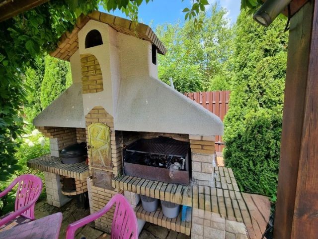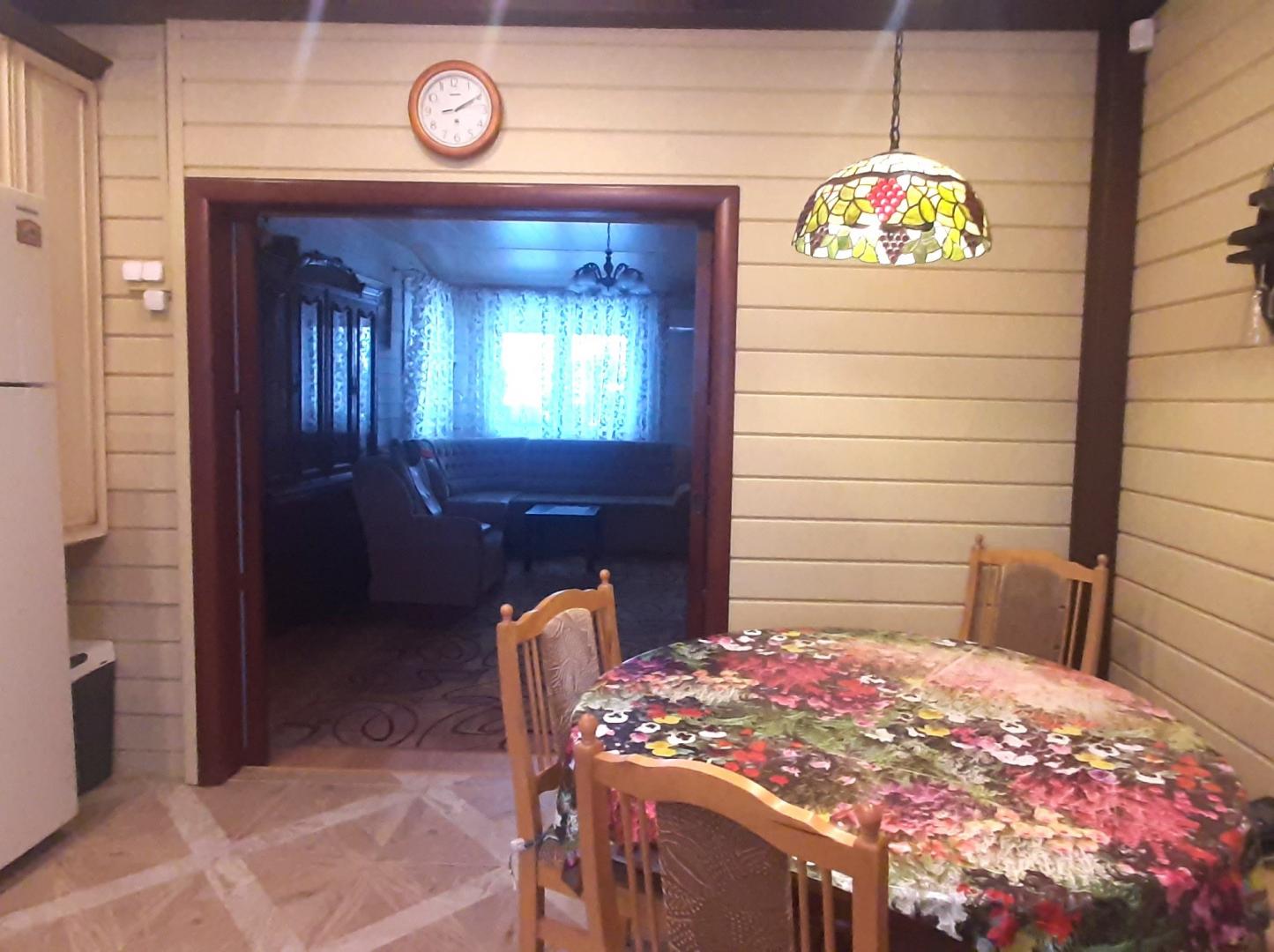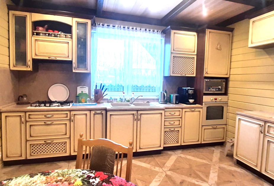 О доме: Одноэтажный дом 123 м², построен в 2015 году, фундамент свайно-винтовой, брус 190х150 мм, внутренние стены 150х150 мм. Окна Rehau, мягкая кровля CertainTeed USA. Дом имеет 3 входа, кухня-столовая 40 м² (15 м²+25 м²), 3 отдельные комнаты (14 м²,12 м²,11 м²), веранда 13 м² с панорамным остеклением и электрокамином, 2 санузла, душевая с сауной. Электрические теплые полы на кухне и в санузлах, кондиционеры на кухне-столовой и на веранде. Газ, электричество, центральное водоснабжение, своя скважина (34 метра, вода не требует фильтрации), центральная канализация.