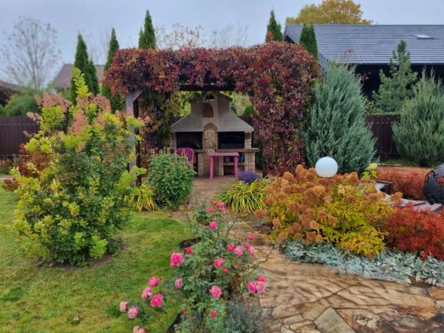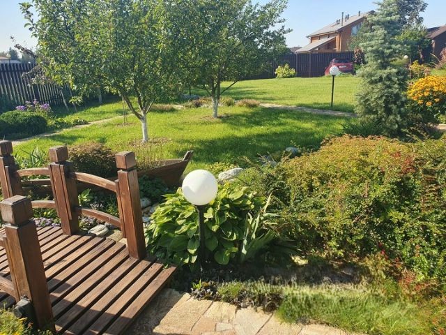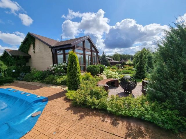 Об участке: Участок 13,4 сотки, правильной формы, границы установлены. Выполнен ландшафтный дизайн, большое количество эксклюзивных цветов, растений, плодовых и хвойных деревьев. Стеклянная теплица на фундаменте 4,2х2,4 метра, бассейн Franmer с подогревом и оборудованием, зона барбекю на фундаменте Трио, очаговая зона с эксклюзивными скамейками, на участке водоем с водопадом и сухим ручьем, зона патио с мебелью, сарай 3х4 метра, 2 въезда с парковками на 5 машин (3 на участке, 2 за воротами). Участок огорожен Евроштакетник Мастеровит. Освещение по всему участку. Охрана.