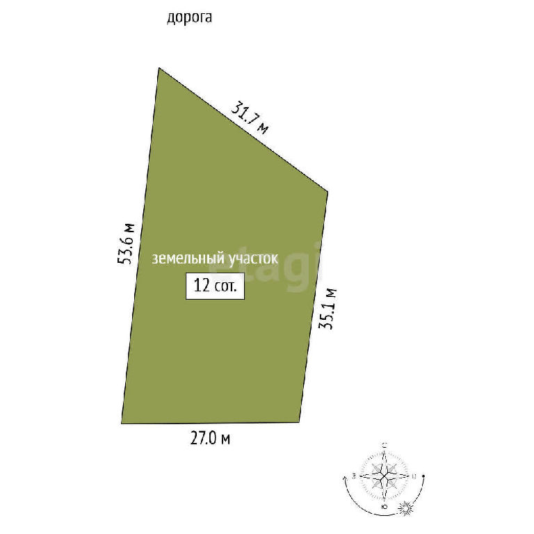 Площадь: 12 соток компактный, удобный для строительства или дачного использования.