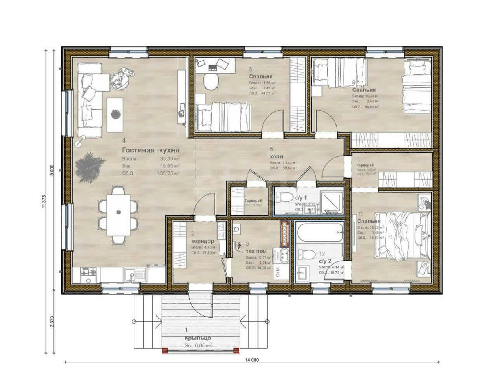 Площадь дома: 133 м2
