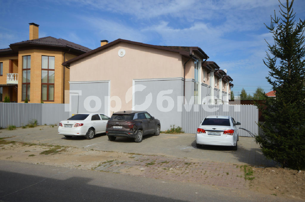 Территория таунхауса огорожена, благоустроена, свободная парковка.
