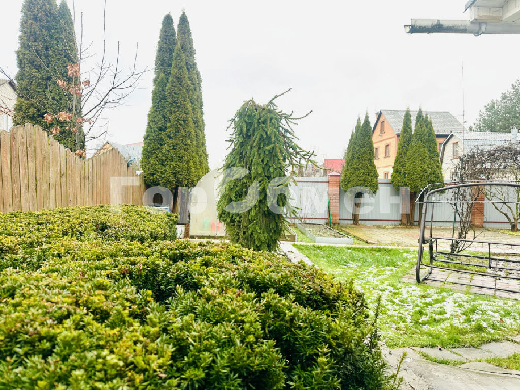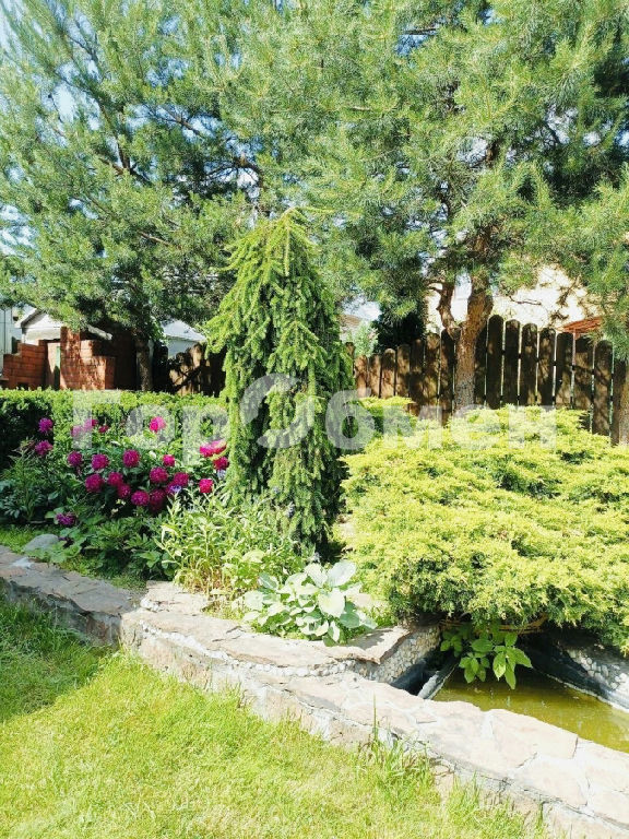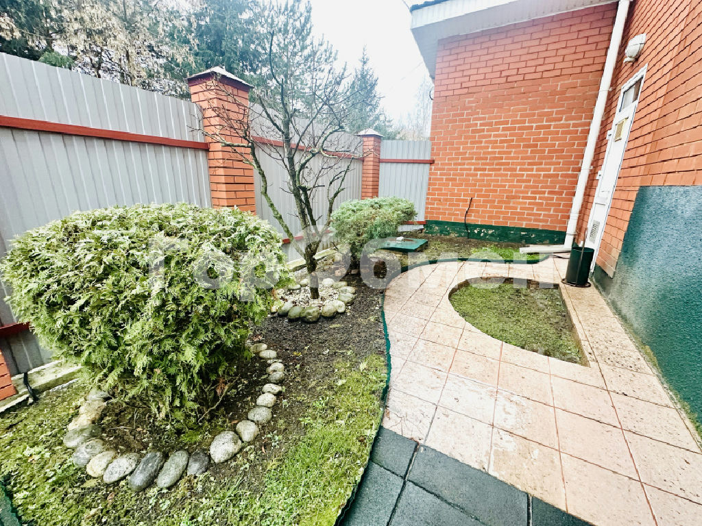 Площадь участка поражает своей продуманной и гармоничной ландшафтной архитектурой. Ухоженный газон, разнообразные плодовые кустарники и деревья. Еловая стена под окнами дома. Виноградная лоза. Высокие грядки.