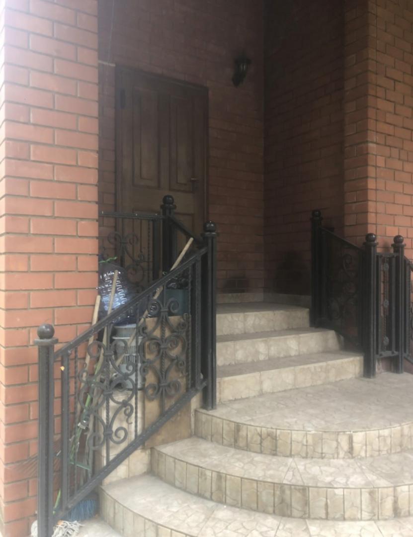 Все двери в комнатах, сан. узлах, подсобных помещениях выполнены из натурального дерева ( дуб массив), полы паркет, на окнах кованые решетки( ручная ковка).