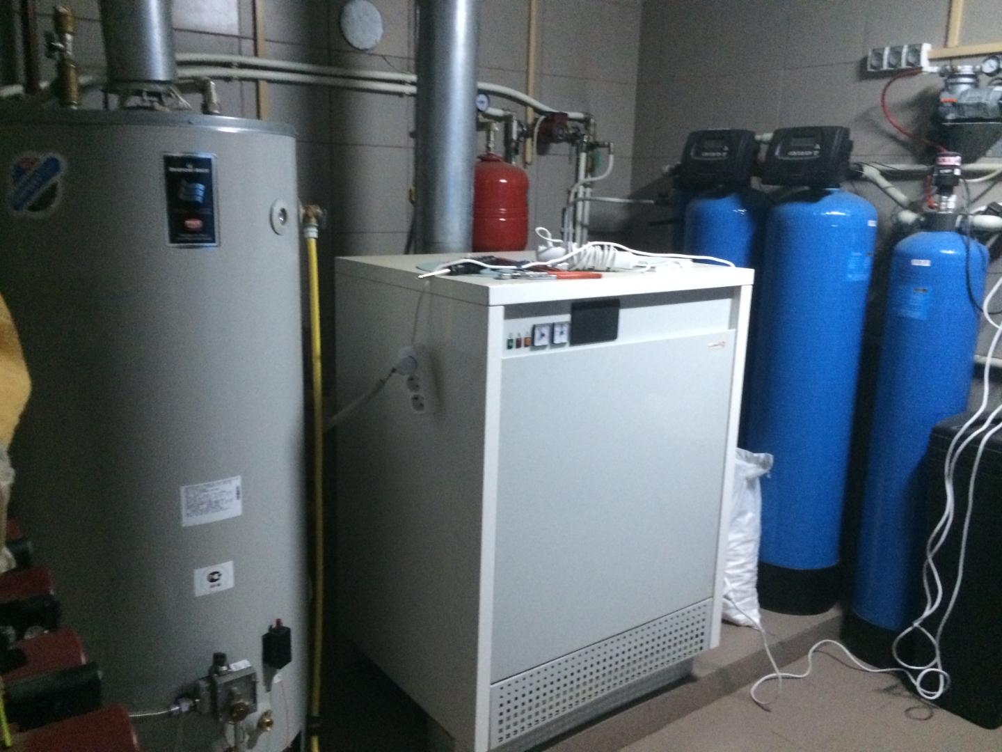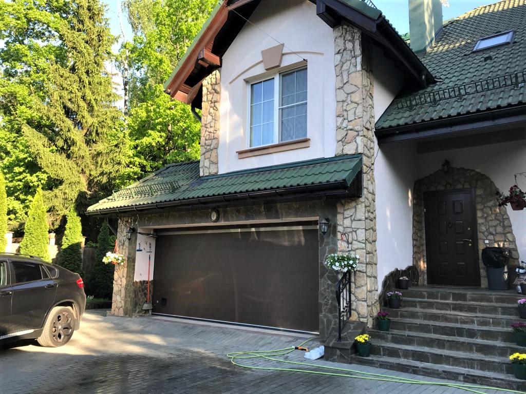 Гараж – ½ цоколя и первого этажа – на две машины. Подведена вода, отопление. Ворота подвесные, электрические.
