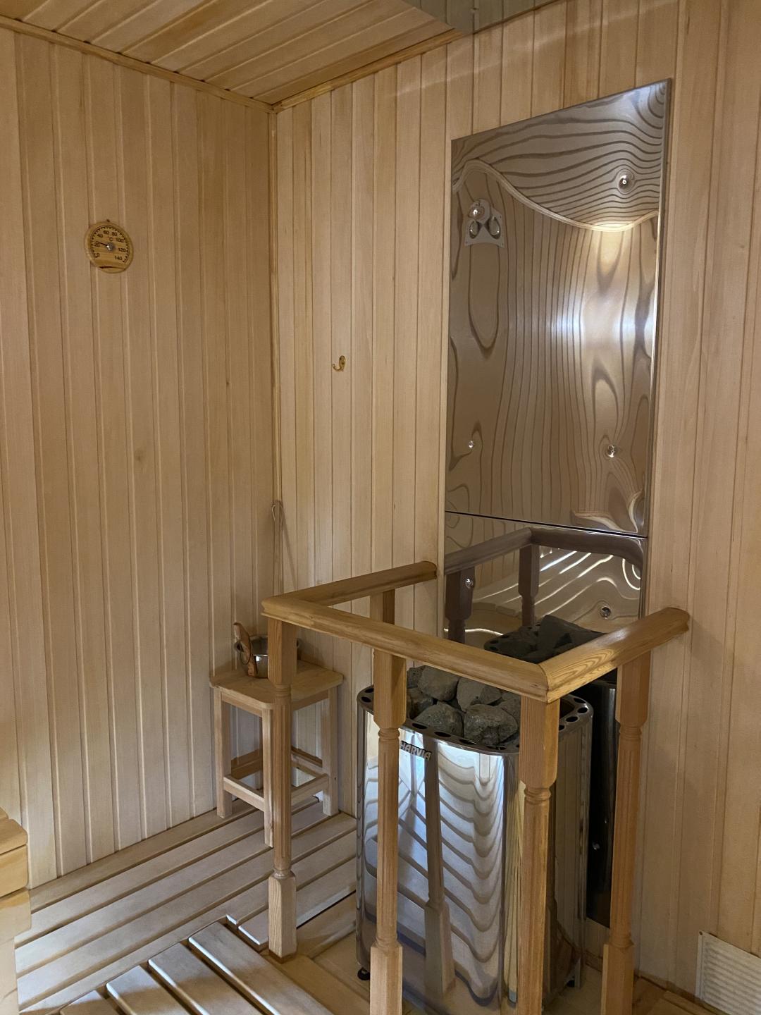Гостевой домик – существует как отдельный жилой блок: спальня, кухня, санузел, душ. Отделка: беленая вагонка, ламинат.