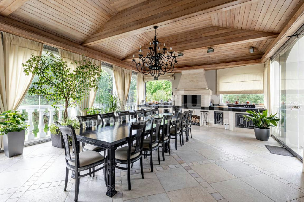 ID 9462 Дом в охраняемом поселке в Московской области. Общая площадь строений более 2.000 кв.м. В 5 км от дома находится собственная эко-ферма. Во всех помещениях работает центральная система вентиляции, кондиционирования и увлажнения воздуха. Дом меблирован итальянской компанией Giorgio Piotto.