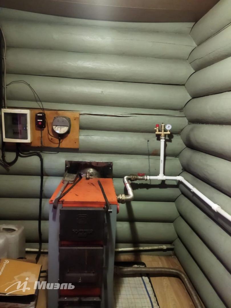 Технические особенности: материал стен оцилиндрованное бревно диаметром 28 см, две террасные группы в конструктиве дома (4 кв м и 6 кв м), свайно-бетонный фундамент (41 шт диаметром 108 см), а/м площадка 6х6 м с выполненной бетонной опалубкой для навеса, бойлерная с твердотопливным котлов 28 кВт, классические радиаторы отопления (11 шт), водонасосная станция с греющим кабелем.
