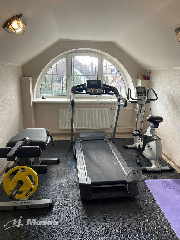 Первый этаж (192,3 кв м): парадная лестница, просторный холл с организованной гардеробной группой, уютная кухня Berloni со встроенной техникой Bosch и компактной обеденной зоной, светлая и благородная гостиная с торжественным камином, облицованным молочным итальянским мрамором, мягким вальяжным диваном, выполненным в американском стиле. Пол гостиной теплый, выполнен из итальянской плитки. Из гостиной выход в приватную часть участка. Рядом с гостиной расположена мастер-спальня с с/у. В надгаражной части дома просторная бильярдная, с высоким арочным окном и видом на въездную группу. Второй этаж (178,7 кв): мастер-спальня с с/у и выходом в зимний сад, две спальни, с/у и кабинет. Третий (мансардный) этаж (103,8 кв м): профессинально оборудованный спортзал, гладильная и гардеробная комнаты,с/у, Кованые обрамления лестниц поддерживают классический стиль интерьера. Со стороны приватной части участка вход в бойлерную.Бойлерная: газовый котел Buderus Logano G-334, накопитель горячей воды-1,5 тонны, шестиступенчатая системы очистки воды с инфракрасным обеззараживанием и соляной системой очистки фильтров, датчик регулировки температуры, включая регулируемый контур напольного покрытия (плитка) в доме. В комнатах дома покрытием пола (дубовая паркетная доска).