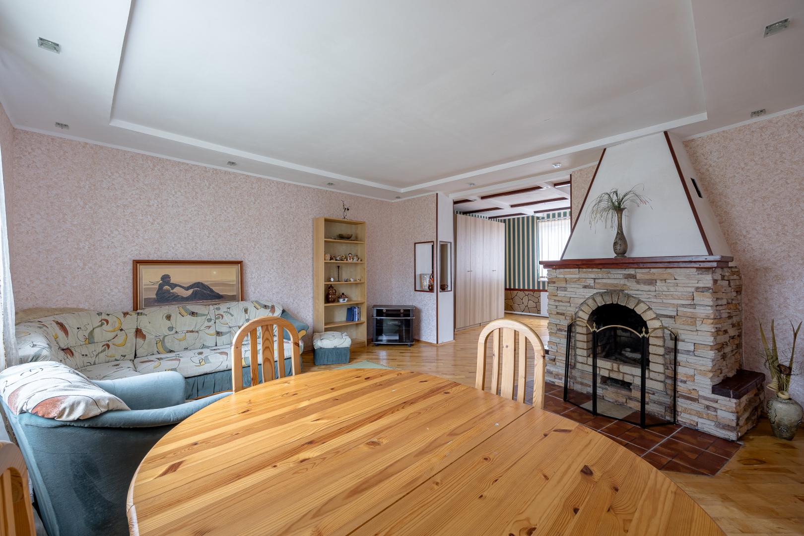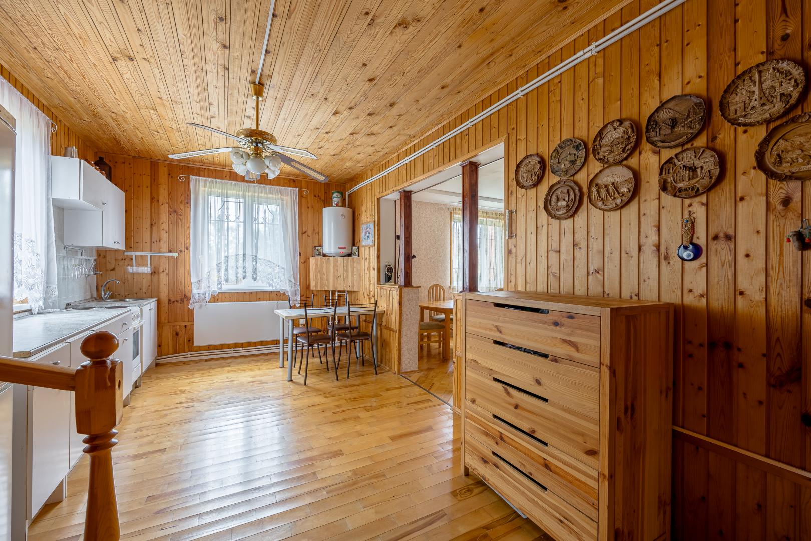 Гараж, словно верный страж, укрылся в стенах дома. Коммуникации налажены: 7 кВт электроэнергии готовы питать Вашу жизнь. Вода из колодца (5 колец) уже подведена в дом, а санузел оборудован переливной системой с откачкой.