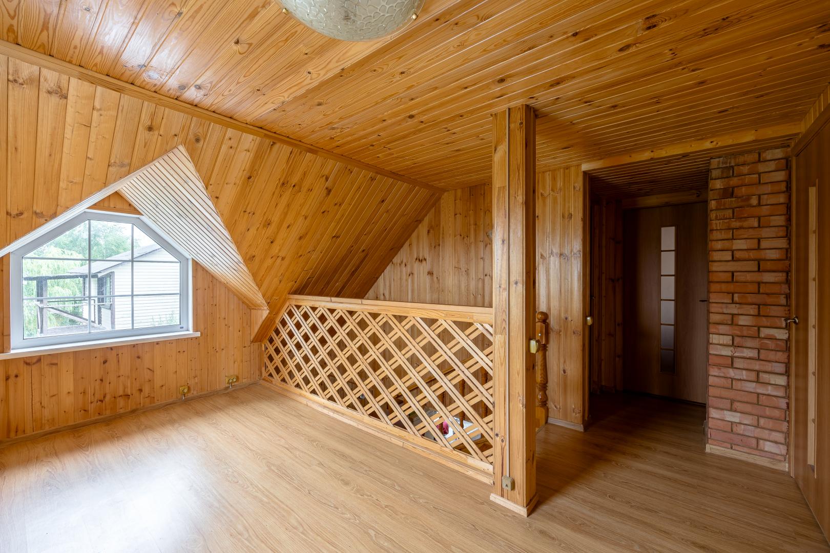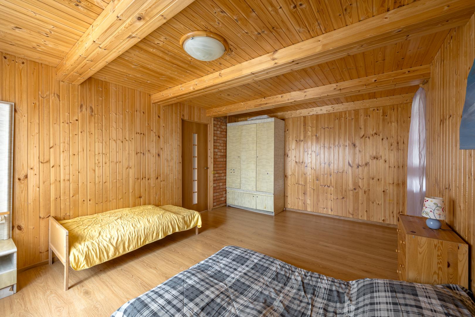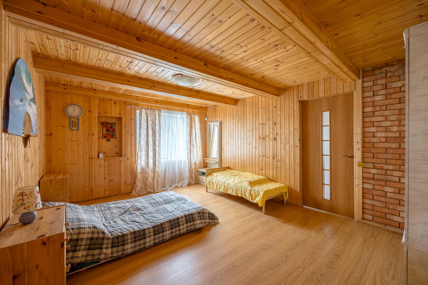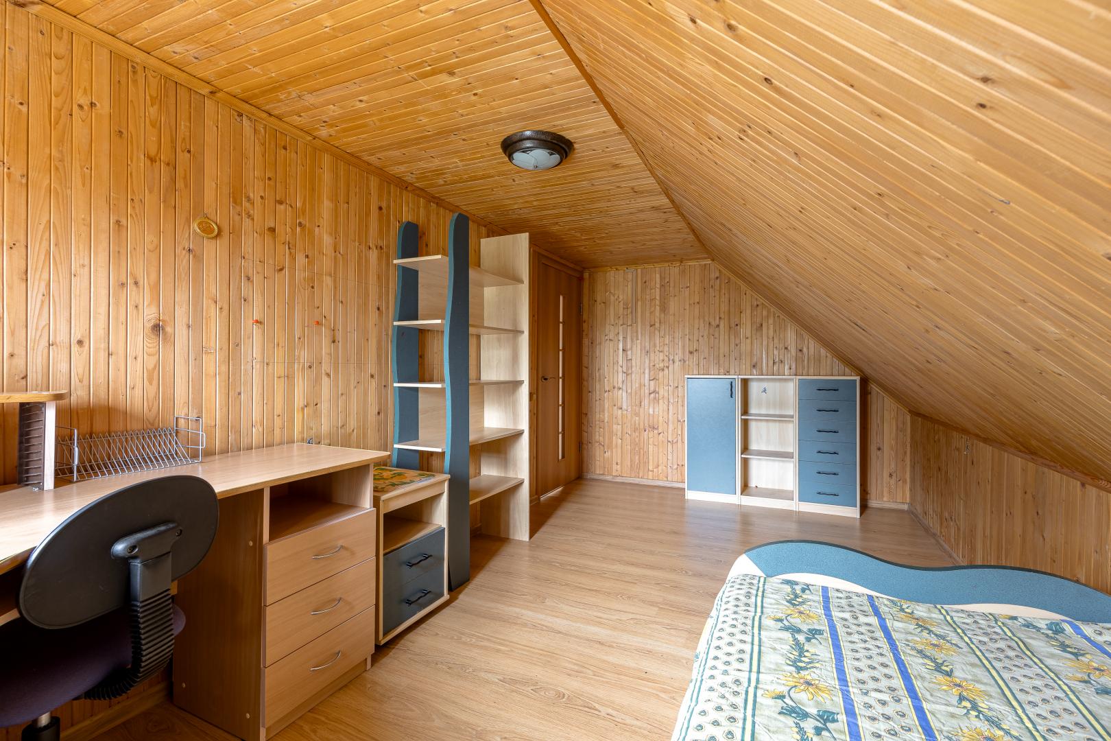 Второй этаж – это три светлые комнаты, одна из которых распахивает свои двери на просторный балкон. Застеклите его стеклопакетами, уже дожидающимися своего часа (стеклопакеты закуплены), и наслаждайтесь панорамными видами в любую погоду.