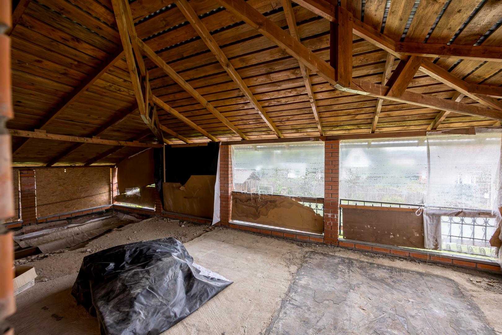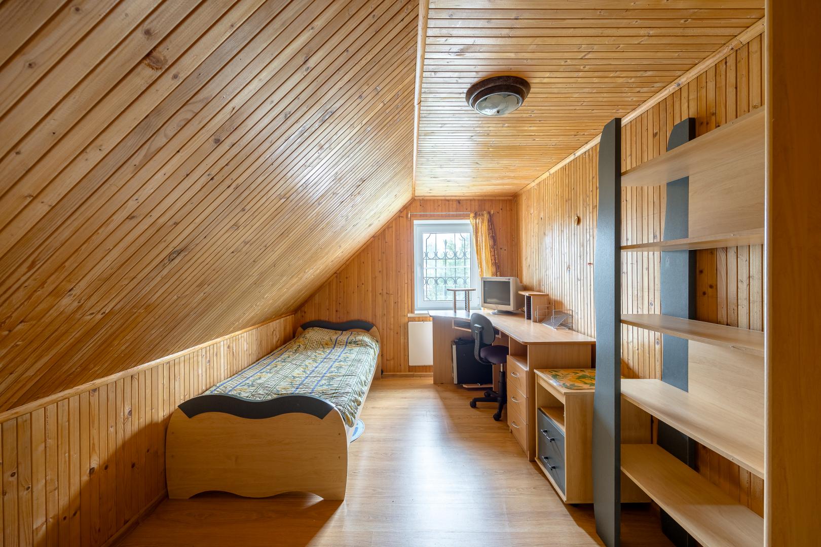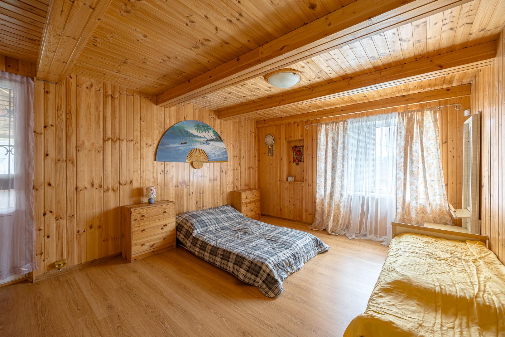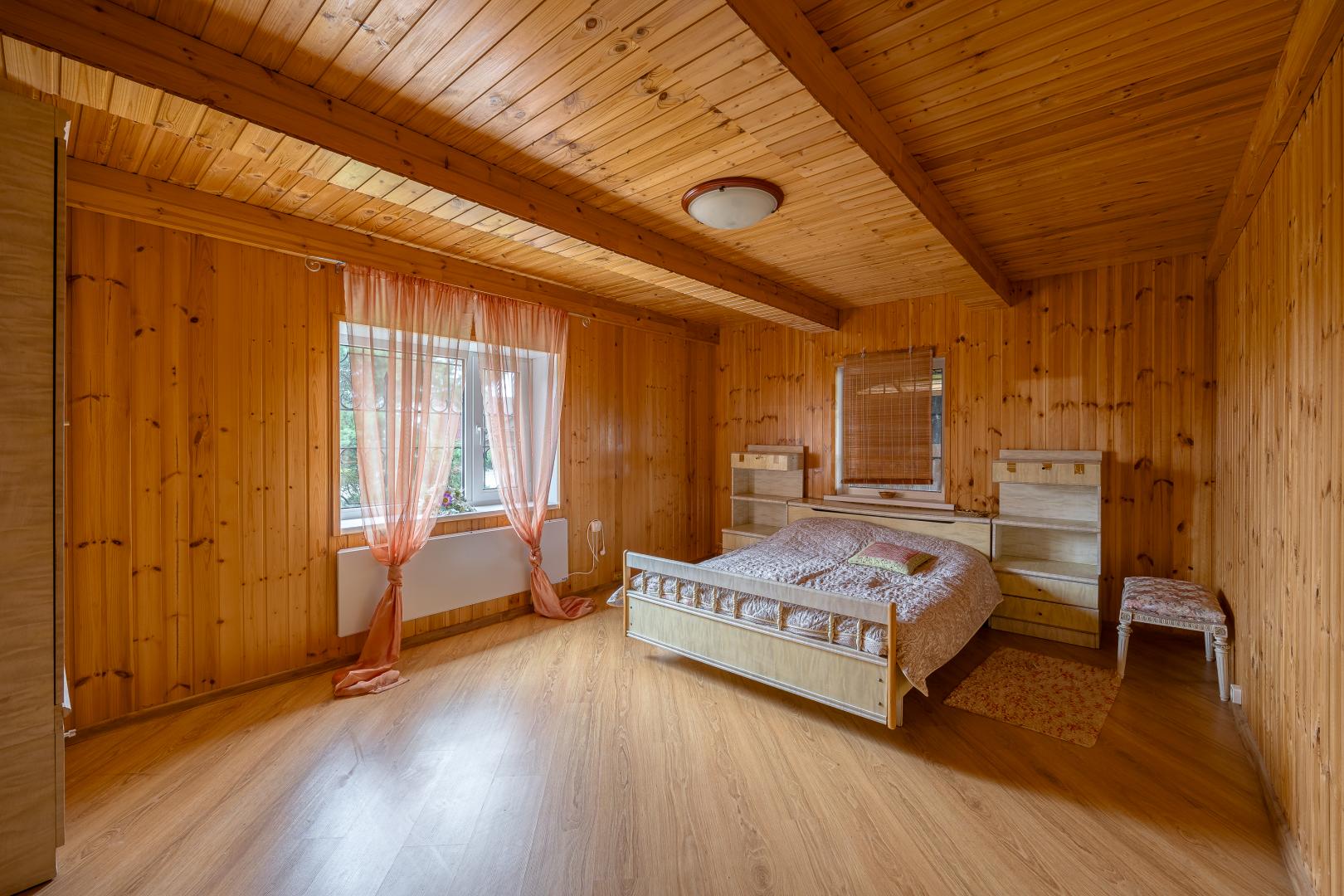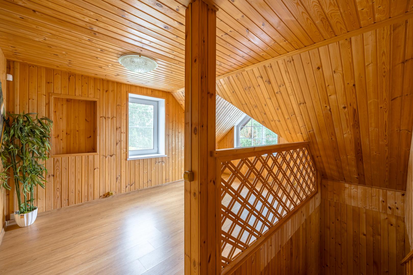 Второй этаж – это три светлые комнаты, одна из которых распахивает свои двери на просторный балкон. Застеклите его стеклопакетами, уже дожидающимися своего часа (стеклопакеты закуплены), и наслаждайтесь панорамными видами в любую погоду.