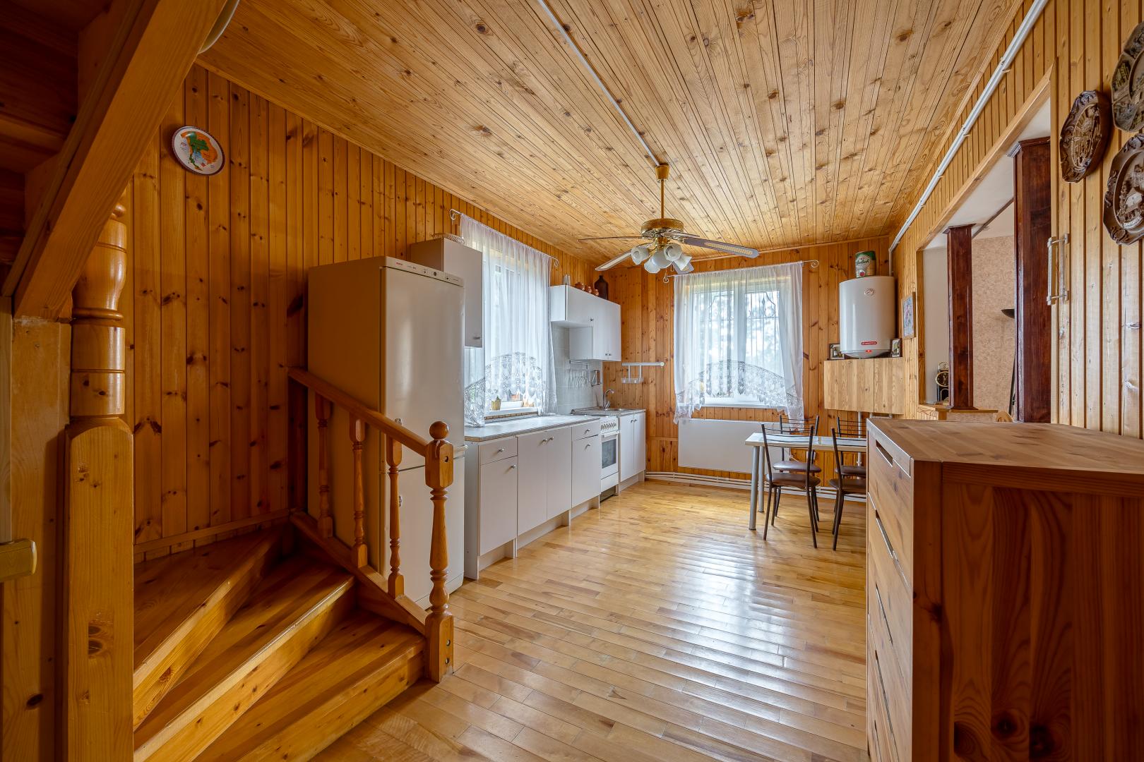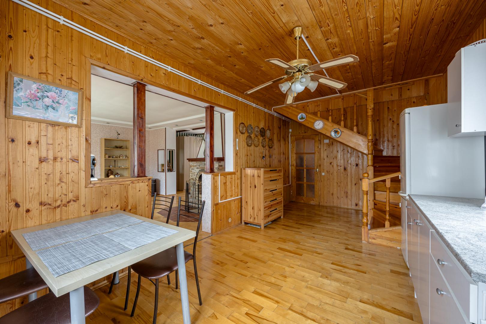 На первом этаже Вас встретит прихожая, где можно оставить суету дня за порогом. Здесь же расположены санузел с душевой кабиной, кухня, гостевая комната и комната, полная возможностей – будь то бильярдная или творческая мастерская.