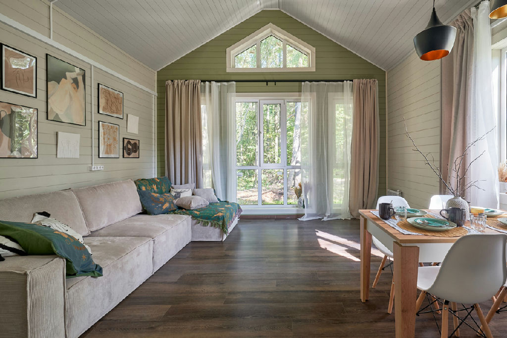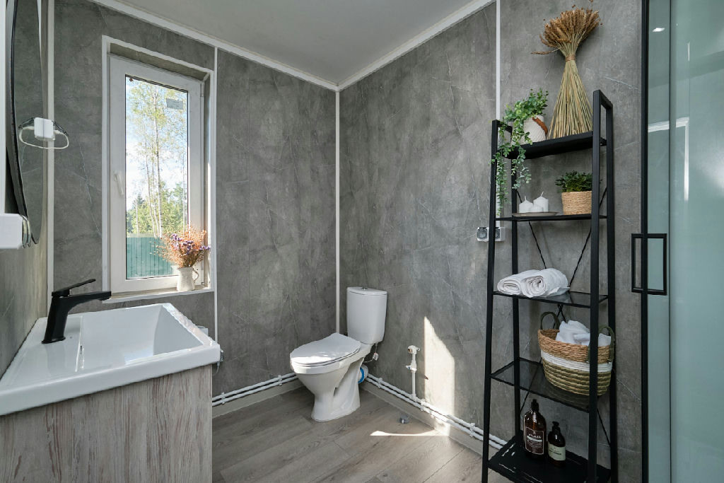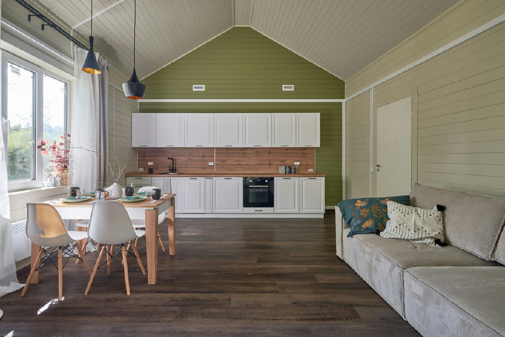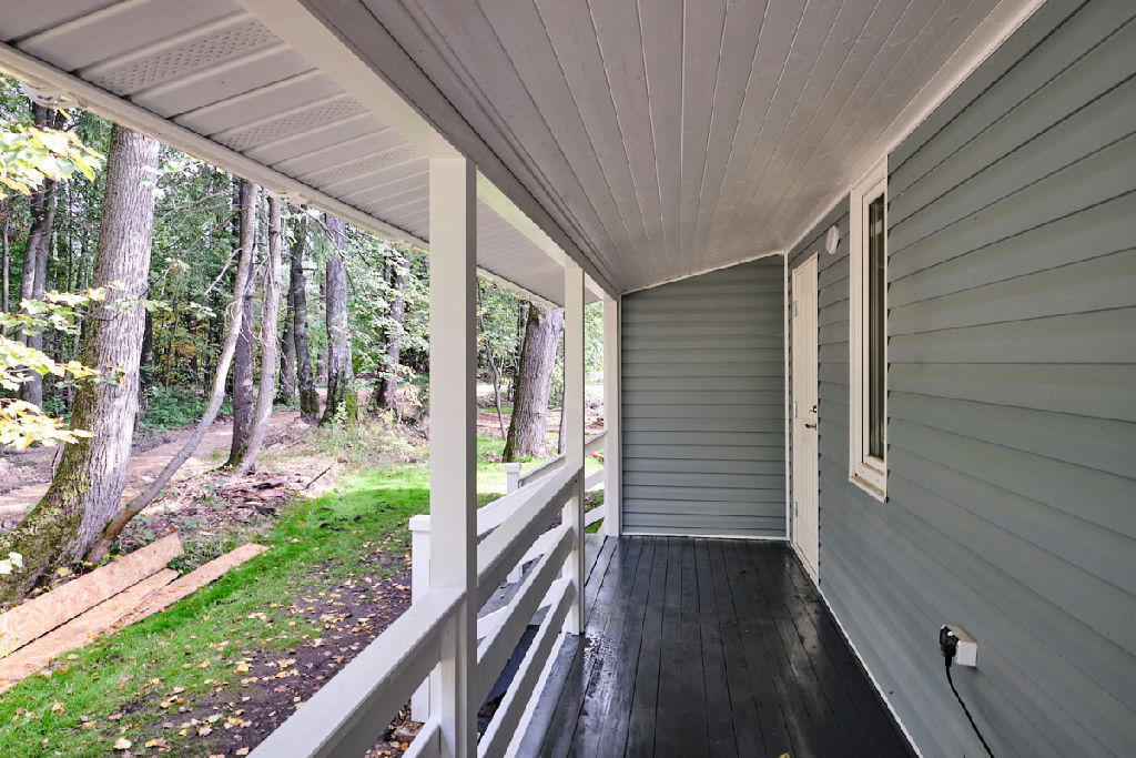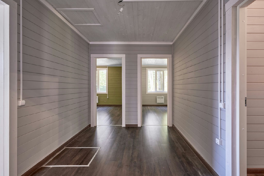 В доме продуманная планировка, которая позволит комфортно разместиться семье с детьми и принять гостей: три отдельные спальни, большая (27 кв.м.) кухня-гостиная, санузел с душевой кабиной, терраса, при входе в дом - гардеробная, и еще есть техническое помещение.