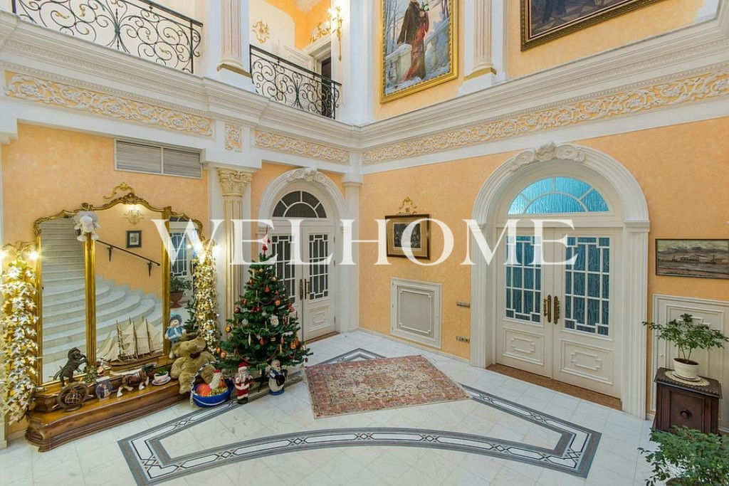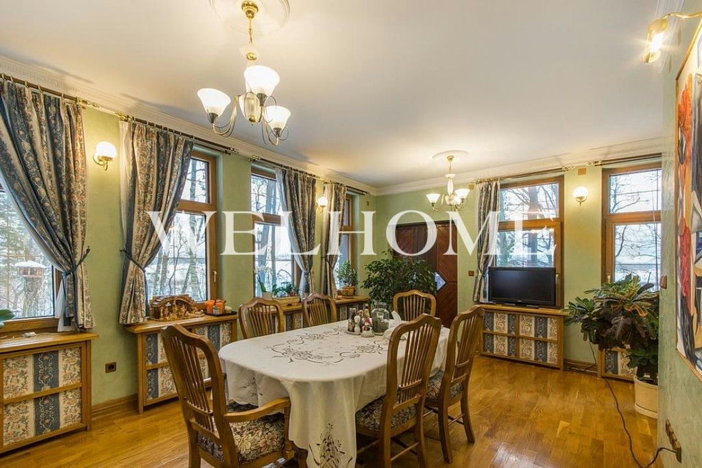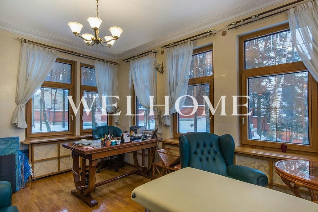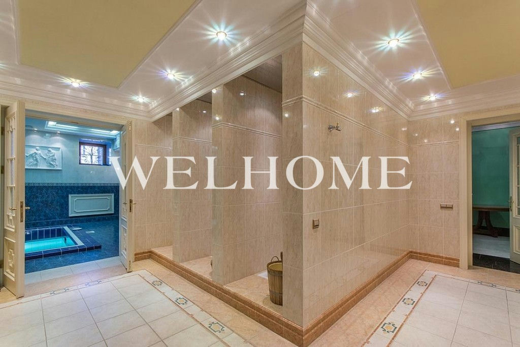 ID объекта на сайте Welhome: Z-13500. Предлагается резиденция на Николиной горе с панорамными видами на пойму Москвы-реки и смотровой площадкой на каскадном участке с вековыми дубами, соснами, елями. Всего резиденция состоит из 7 строений, включая в себя основной дом, автономный гостевой дом 260 кв. м на 4 спальни, дом охраны 235 кв. м, русская баня, теплый гараж на 2-3 автомобиля, второй гаражный комплекс с мойкой на 4 м/м, беседка, летний спортивный домик.Поэтажное описание: Цоколь: бассейн, сауна, тренажерный зал, 3 душевые, 2 с/у, спа-комната, помещения свободного назначения;1 этаж: прихожая, трехсветный холл, зал приемов, зал столовая, два камина, 2 гостевые спальни, комната няни, 3 с/у, кухня с профессиональным оборудованием;2 этаж: хозяйская кухня, 4 спальни, 2 камина, 4 с/у;3 этаж: кабинет с панорамным видом на Москву-реку.Дополнительные постройки: отдельный гараж и дом персонала, беседка, сарай, полноценный гостевой дом из дерева черешни 260 метров на 4 спальни.