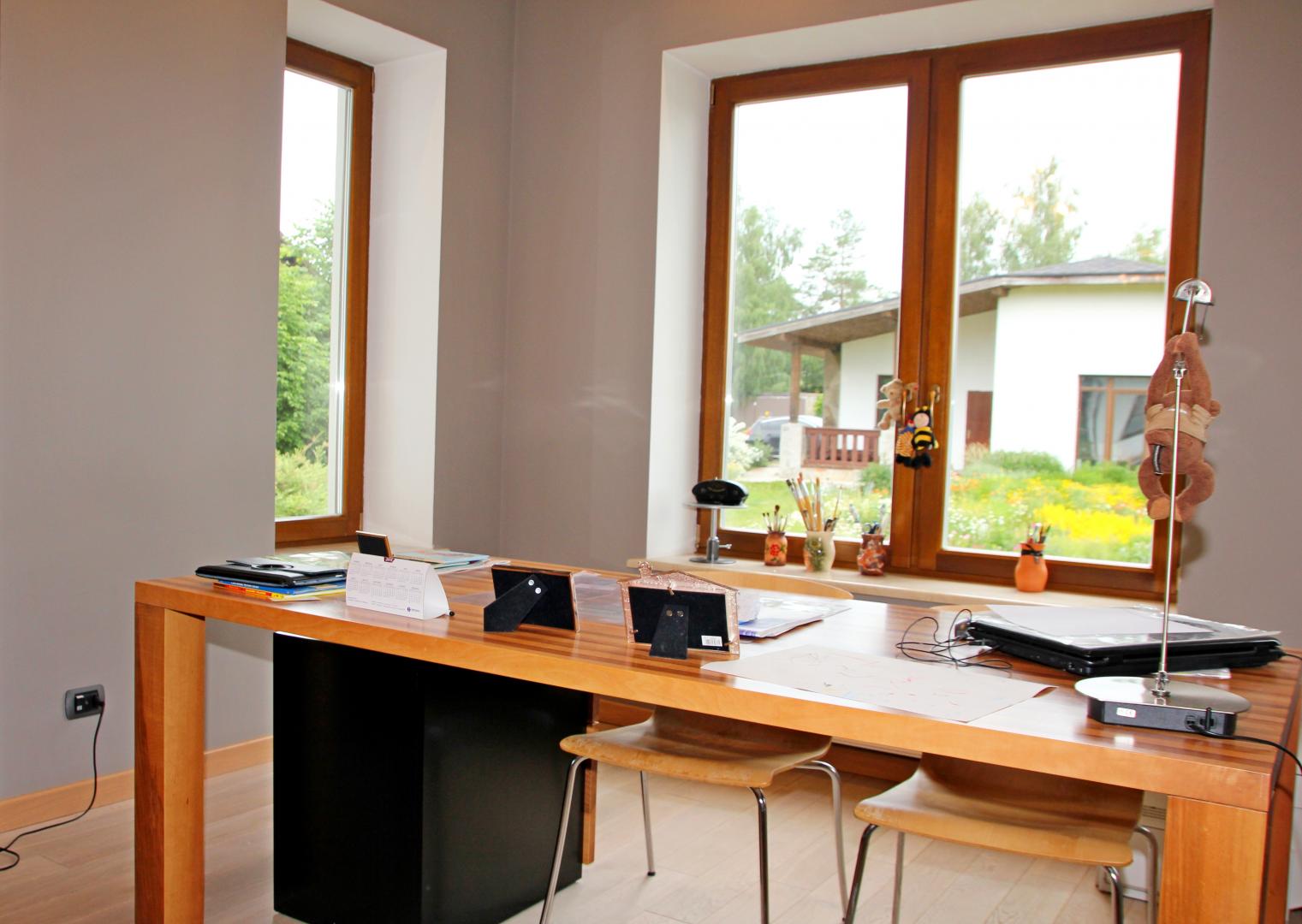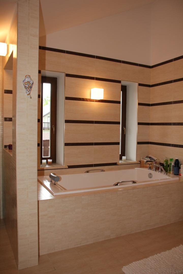 Окна деревянные, с двух-камерными стеклопакетами, подоконники мраморные. Внутренняя отделка дома выполнена по эксклюзивному дизайн проекту с использованием качественных натуральных материалов: итальянский камень, бук беленый.