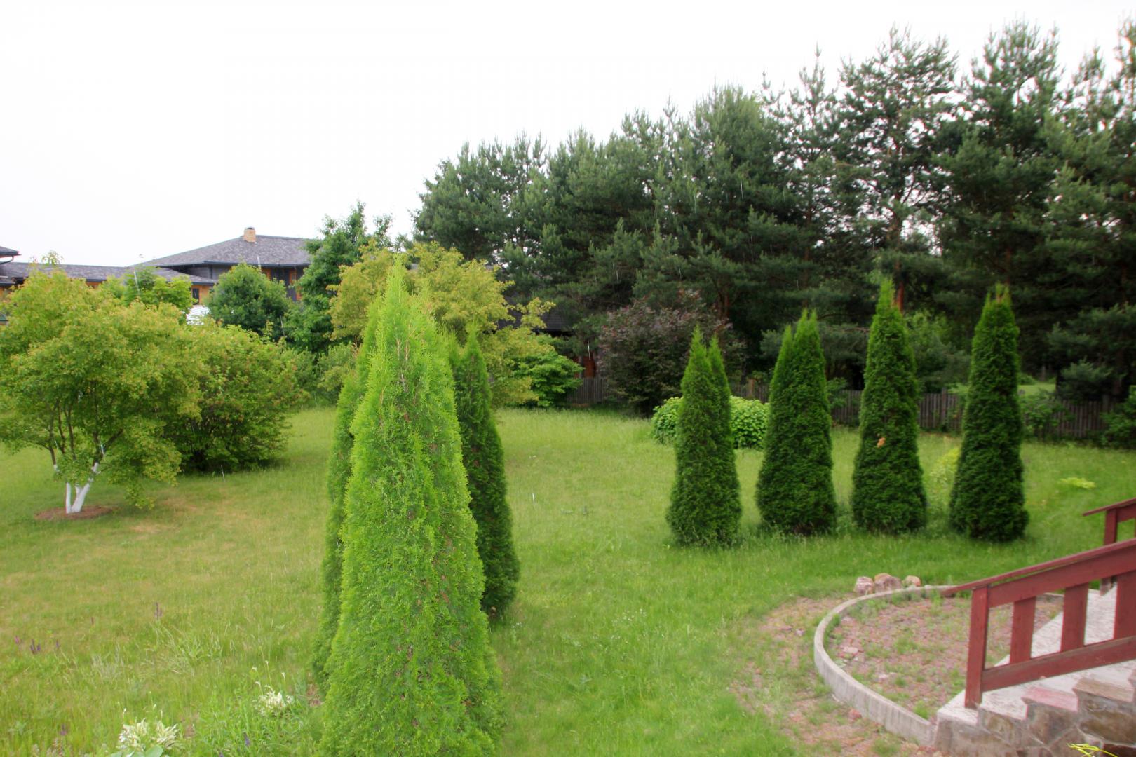 Планировка рациональна и удобна. Подогрев пола водяной. В доме два входа, главный - со стороны улицы, и садовый - из гостиной на летнюю террасу, имеющую патио с барбекю. На первом этаже расположены гостиная с камином, выполненном по индивидуальному авторскому проекту, столовая, зимний сад с выходом на террасу, кухня, кабинет, холл, гардеробная, санузел. Второй этаж - общий холл, четыре спальни с выходом на отдельные террасы. Две из спальных комнат имеют собственные ванные комнаты и гардеробные, для остальных - общая ванная комната и гардеробная. Цокольный этаж, высотой 2,40 м, включает постирочную и три больших помещения. На участке находится отдельно стоящее строение, площадью 120 м.кв., в одной его части расположен гараж на три машиноместа, другая - в черновой отделке, планируется как гостевой домик в японском стиле (инженерные коммуникации заведены в дом). Участок ухожен и благоустроен. Плодовые деревья и кустарники. Дополнительная информация по телефону.