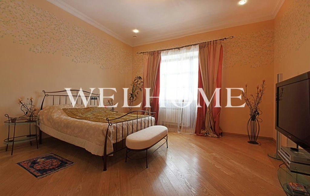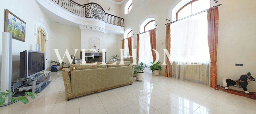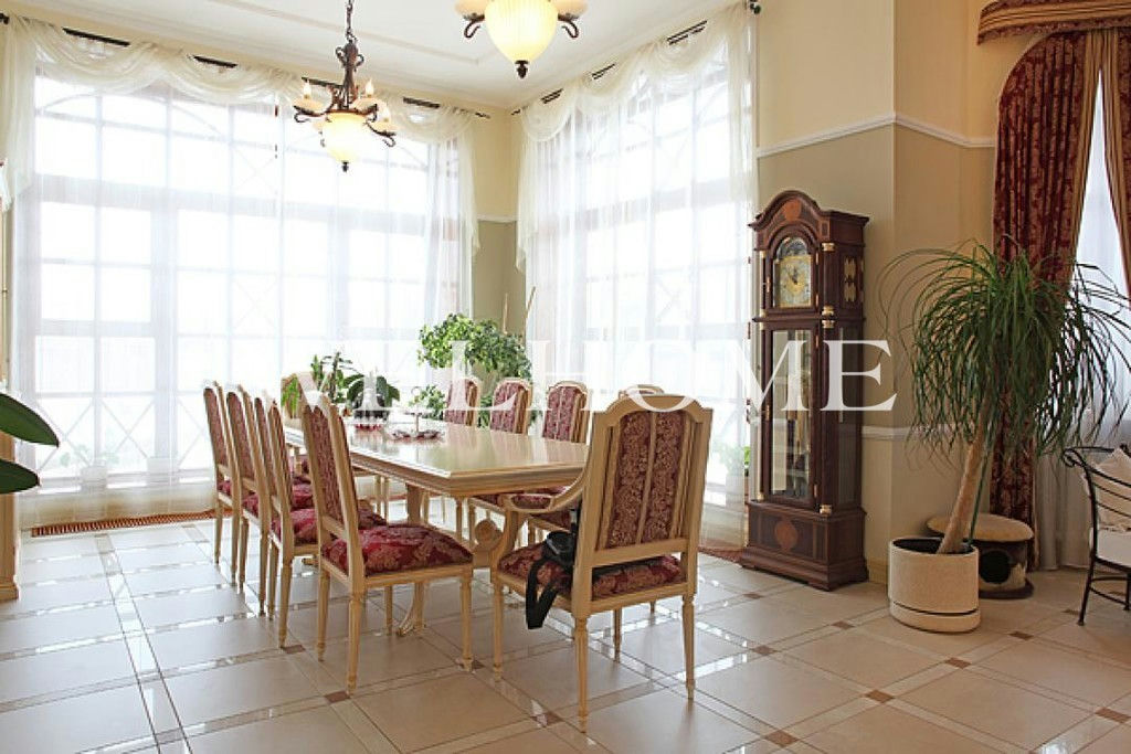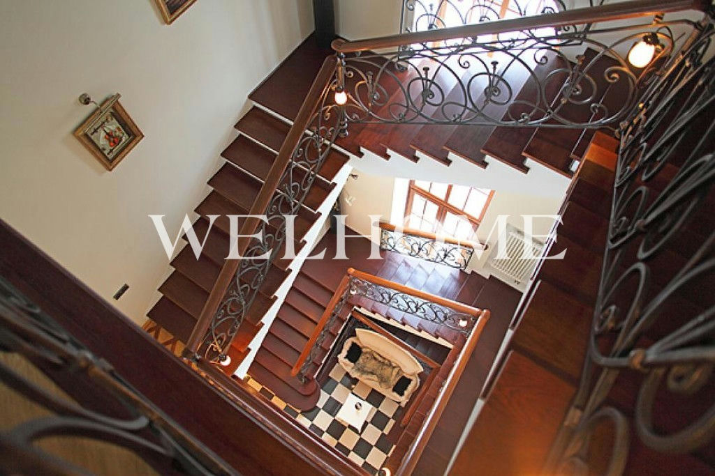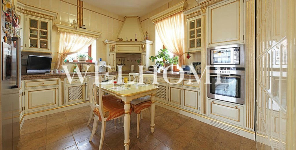 ID объекта на сайте Welhome: Z-10118. Предлагается особняк с классической отделкой под ключ на ландшафтном участке в охраняемом поселке.Поэтажное описание: Цоколь: котельная, холл, кладовые, постирочная, винная комната, бильярд, с/у;1 этаж: холл, гостиная с камином, кухня, столовая, с/у, гараж на 3 машины с квартирой для персонала, бассейн, сауна;2 этаж: 3 спальни с с/у;Мансарда: спальня с с/у, кабинет с кинотеатром.В доме бассейн с зоной отдыха, сауна, 4 спальни, 6 с/у, гостиная с камином и вторым светом, гараж на 3 м/м с квартирой для персонала. В наличии вся необходимая мебель, бытовая техника, сантехника. На ухоженном участке оборудована детская площадка, предусмотрена гостевая парковка.