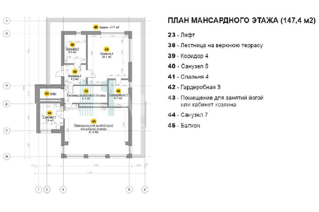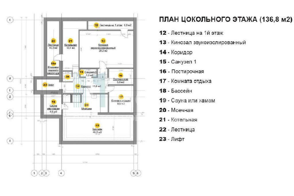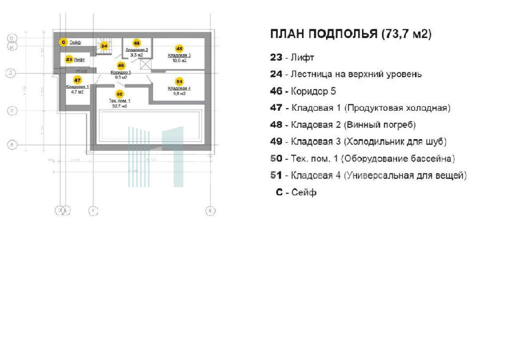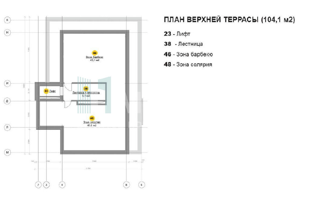 По проекту предусмотрена лифтовая шахта для установки лифтового оборудования, что сделает эксплуатацию дома комфортной и будет давать возможность из гостиной подняться прямо на эксплуатируемую кровлю или спуститься в бассейн, в винный погреб, кладовые. Эксплуатируемая кровля комфортная зона отдыха с очень красивым видом, дающая возможность устраивать эксклюзивные вечера барбекю, а также использовать ее как великолепный солярий с джакузи. На кровлю так же есть прямой выход из лифта. Функционально удобная планировка дома и правильное зонирование спальных зон (окна спален выходят на лес) создают ощущение полной приватности.