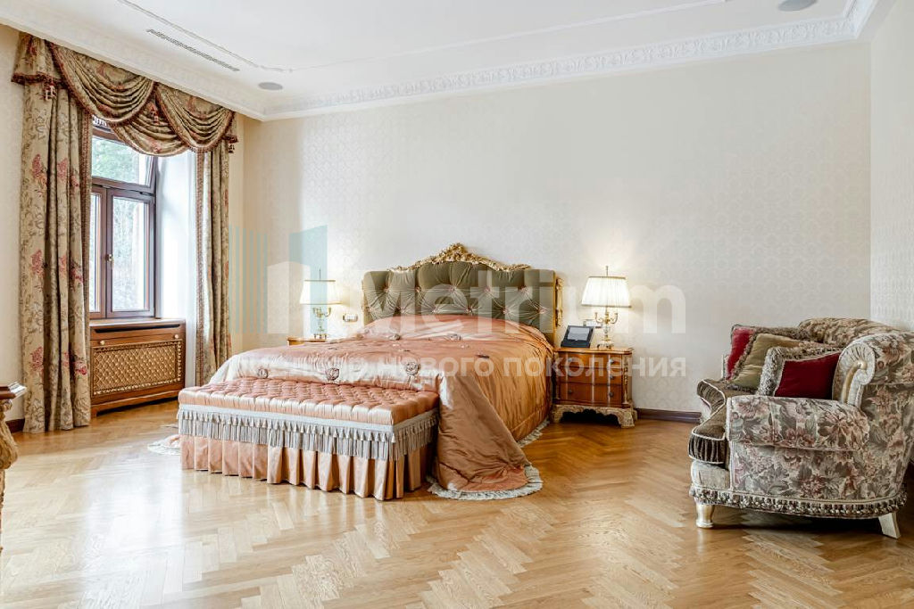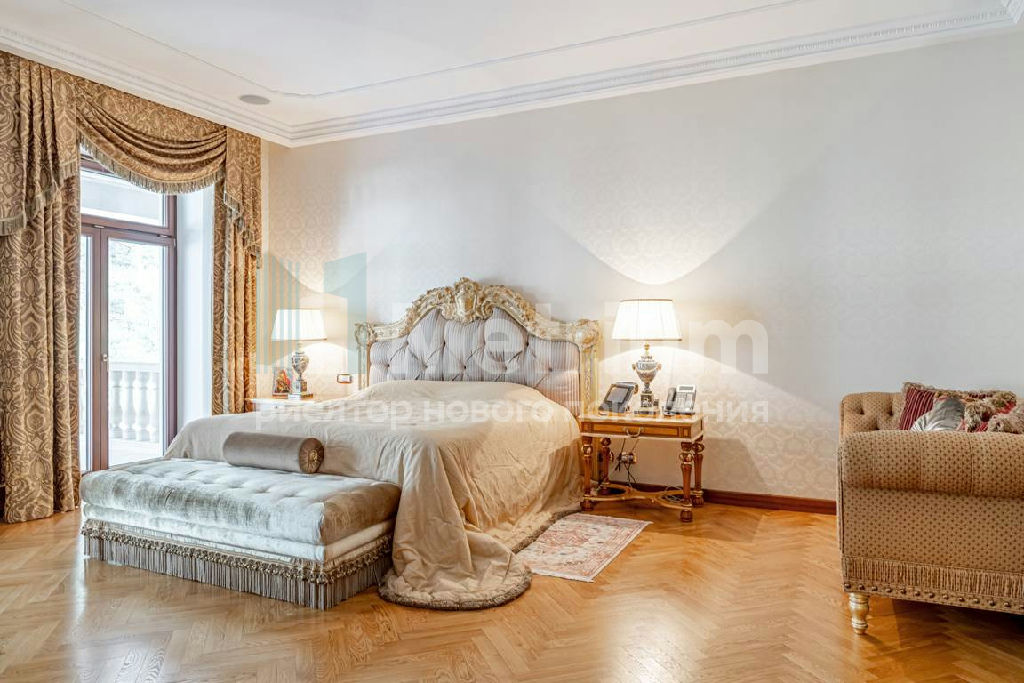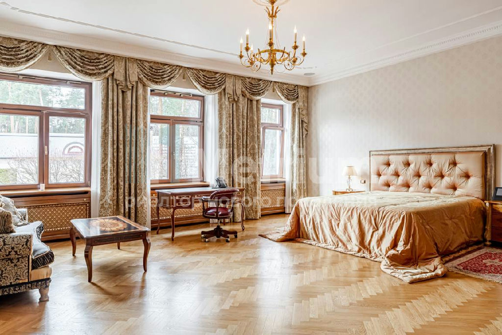 ID 12520 Дом в классическом стиле. Дорогие отделочные материалы, мебель Francecso Molon , изготовлена на заказ .Выполнены все работы по благоустройству, подсветка, газон, лесной участок, сохранены многовековые сосны. Гаражный комплекс на 4 машиноместа с автомойкой. Квартиры для персонала. Поселок "Сады Майендорф" расположен на бывшей территории легендарного Санатория Барвиха на 7 км Рублево-Успенского шоссе.