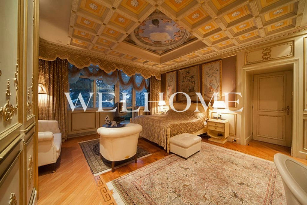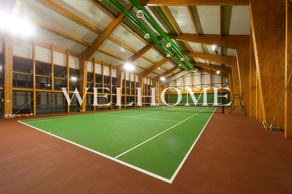 ID объекта на сайте Welhome: Z-10684. Предлагается комплекс строений, состоящий из спортивно-развлекательного комплекса, теннисных кортов, бассейна, главного и гостевого домов, с гаражом на 2 м/м и квартирой для персонала из 3-х комнат. Внутри проведена полная реконструкция, интерьер украшен стеновыми панелями из вишни, авторскими витражами, установлены бронированные окна и двери, современная инженерия.В спортивном комплексе оборудован теннисный корт, кухня с грилем, зона барбекю, хамам, купель, бильярдная, бассейн 20х7 м (глубина от 1,3 до 3,5 м) с джакузи, трамплином и водопадом, тренажерный зал.Поэтажное описание: 1 этаж: прихожая, кухня, с/у, столовая, гостиная с камином и баром;2 этаж: кабинет, 2 спальни с с/у, гардеробными.На прилегающем участке с качественным ландшафтным дизайном растут сосны. Все коммуникации центральные.