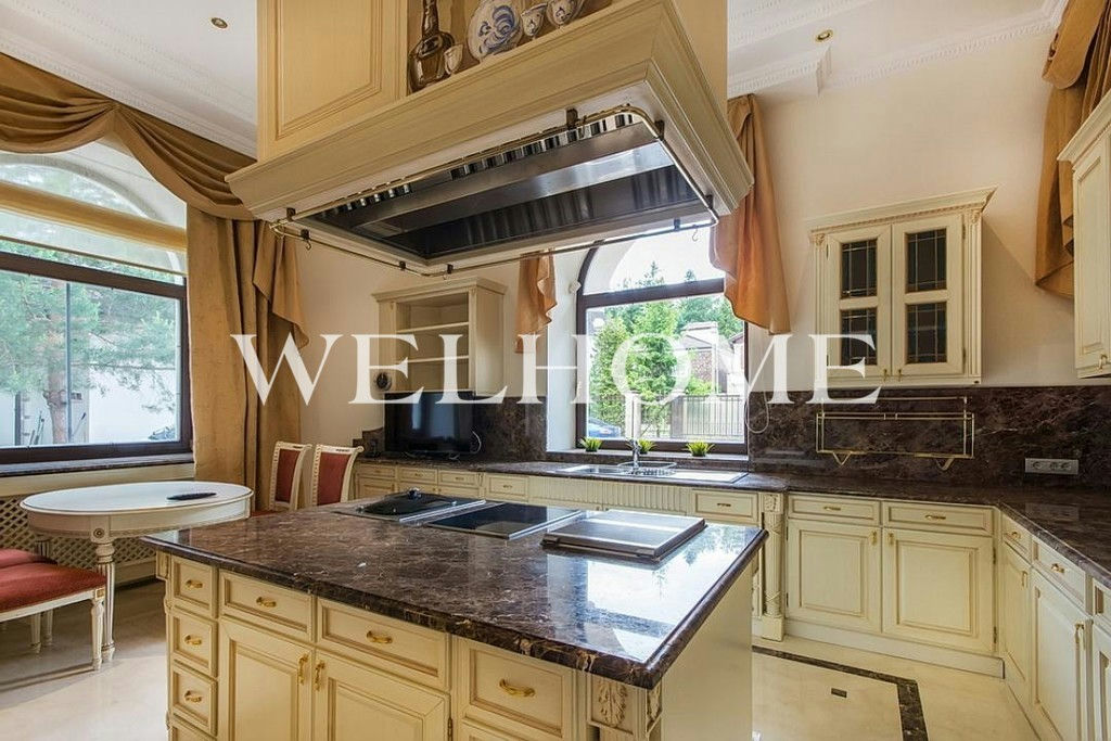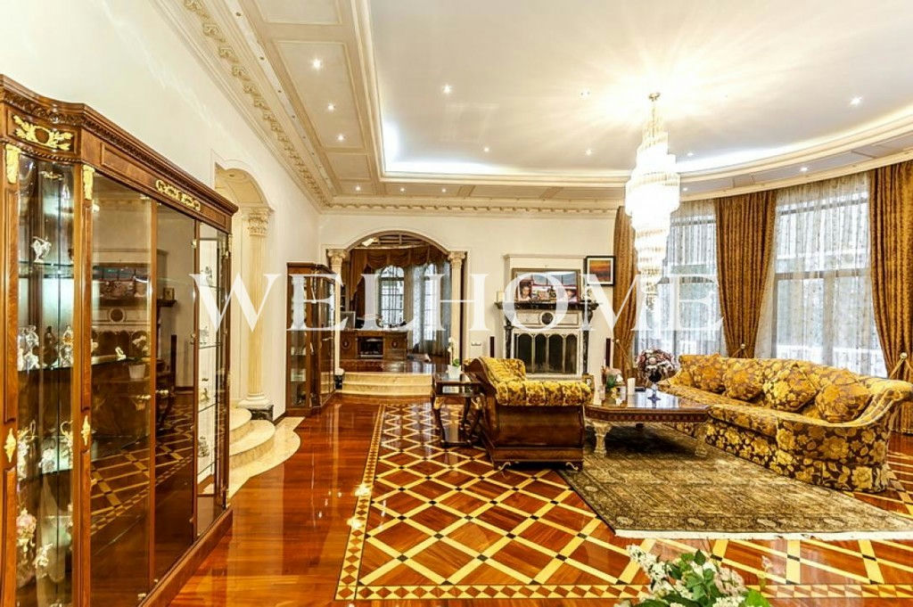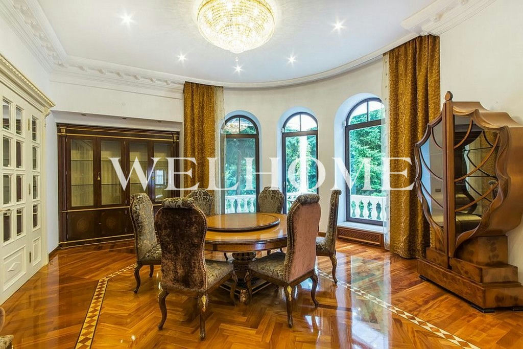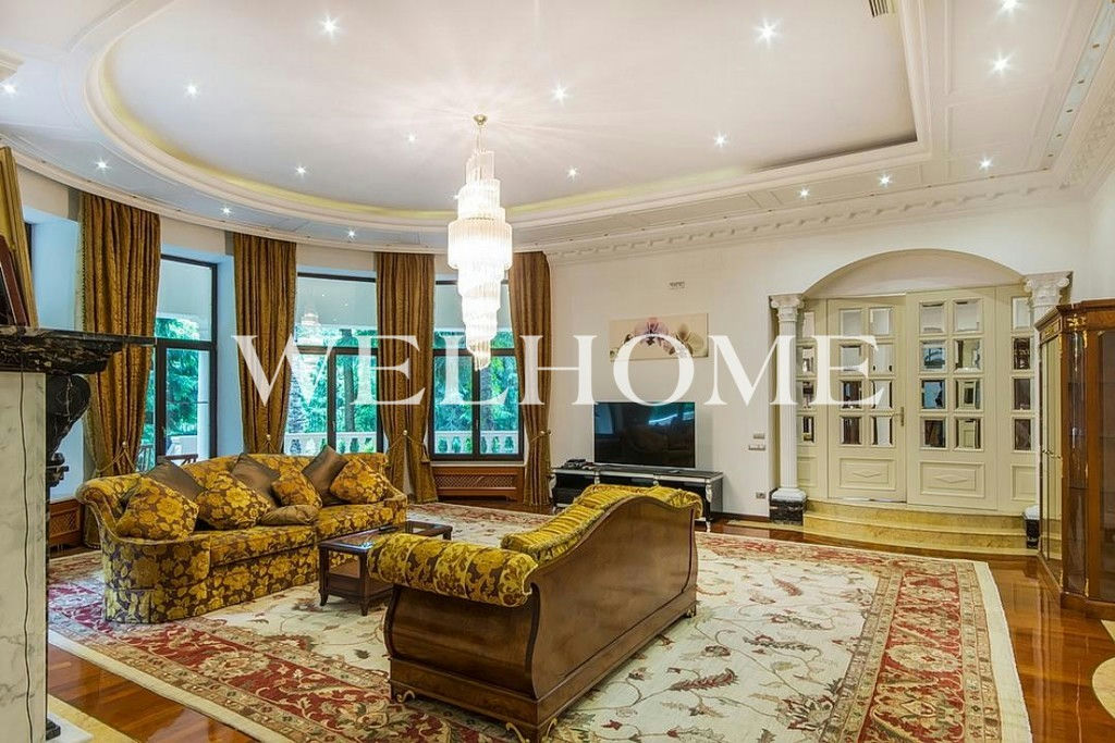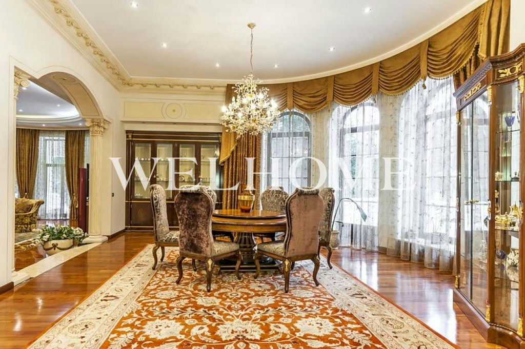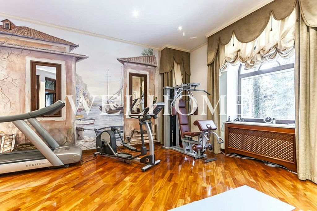 ID объекта на сайте Welhome: Z-11150. Предлагается эксклюзивный особняк под ключ в известном поселке. Изысканный дом в итальянском стиле общей площадью 1200 кв. м окружен сосновым лесом. Во внутренней отделке использованы ценные породы дерева, натуральный камень, лепнина. Интерьер особняка выдержан в дворцовом стиле, комнаты меблированы предметами от ведущих европейских фабрик, пространство оформлено с помощью антиквариата, установлена качественная бытовая техника и сантехника премиум-класса. В доме оборудован большой бассейн с просторной зоной спа, тренажерный зал. На просторном прилегающем участке с продуманным ландшафтом создан собственный пруд, вымощены дорожки. Подключены центральные коммуникации.