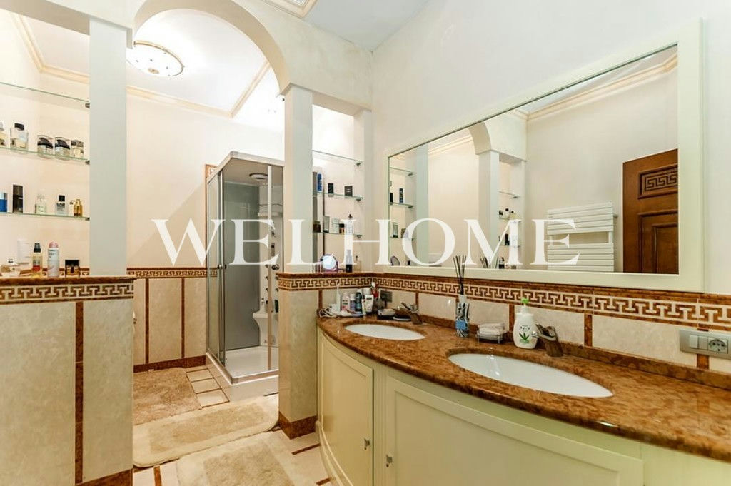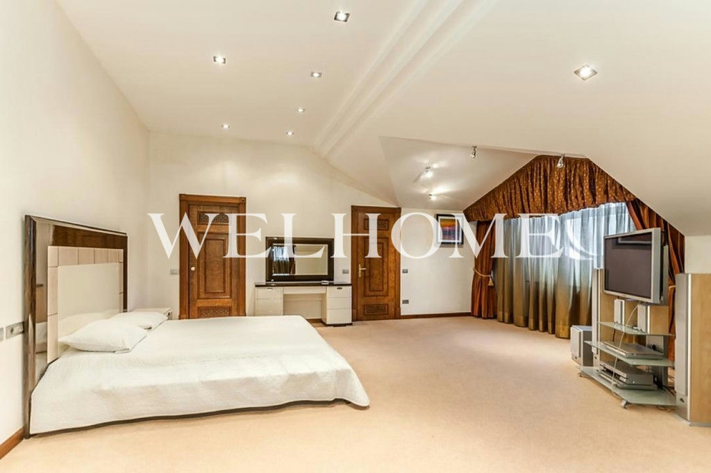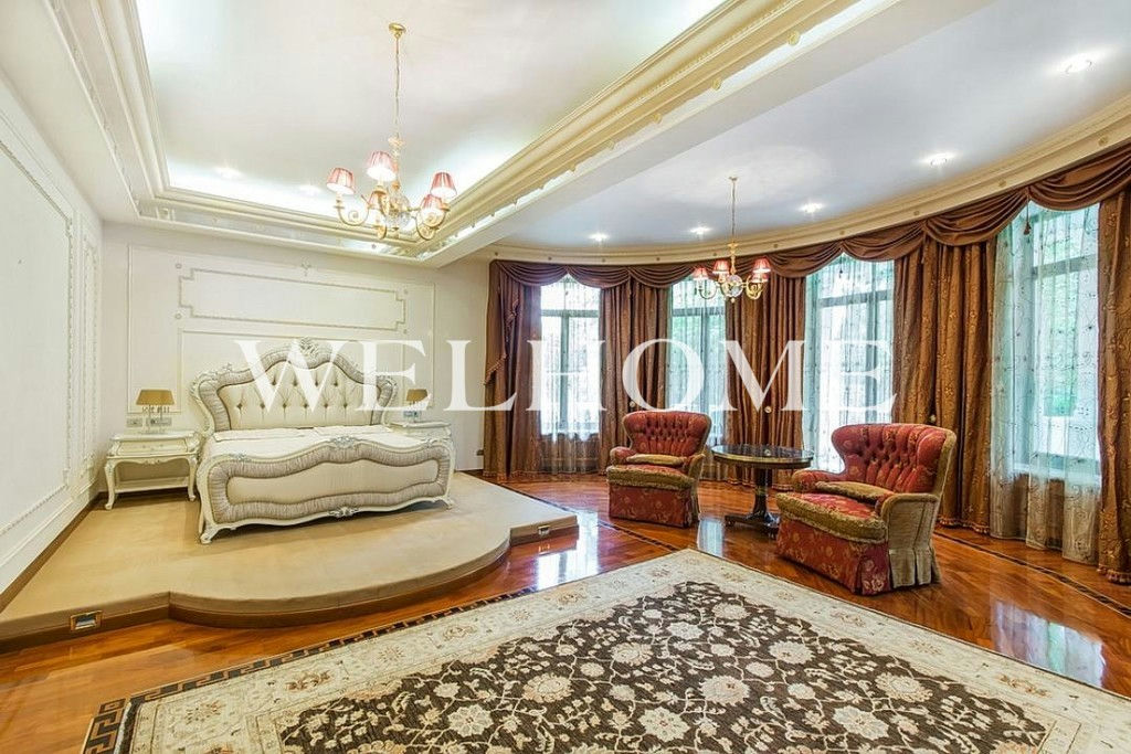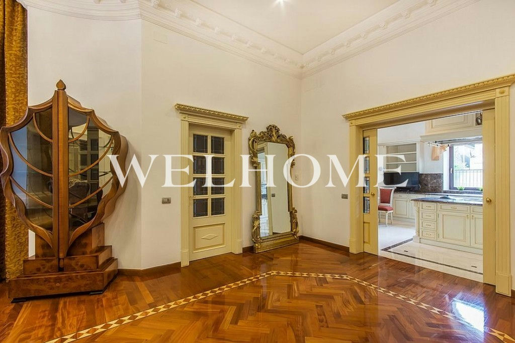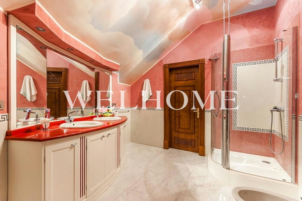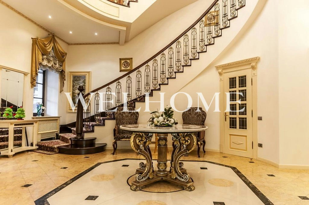 ID объекта на сайте Welhome: Z-11150. Предлагается эксклюзивный особняк под ключ в известном поселке. Изысканный дом в итальянском стиле общей площадью 1200 кв. м окружен сосновым лесом. Во внутренней отделке использованы ценные породы дерева, натуральный камень, лепнина. Интерьер особняка выдержан в дворцовом стиле, комнаты меблированы предметами от ведущих европейских фабрик, пространство оформлено с помощью антиквариата, установлена качественная бытовая техника и сантехника премиум-класса. В доме оборудован большой бассейн с просторной зоной спа, тренажерный зал. На просторном прилегающем участке с продуманным ландшафтом создан собственный пруд, вымощены дорожки. Подключены центральные коммуникации.